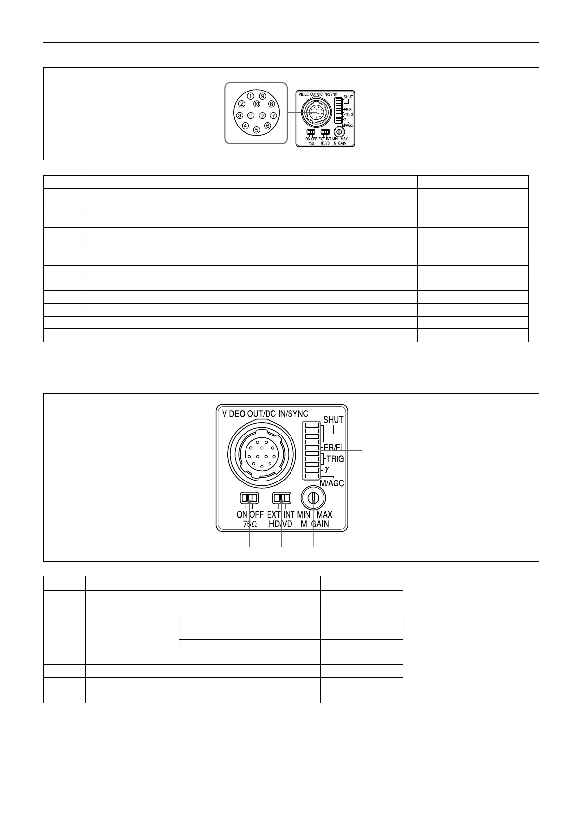 Pin No. Camera sync output External Sync (HD/VD) Restart/Reset External trigger shutter