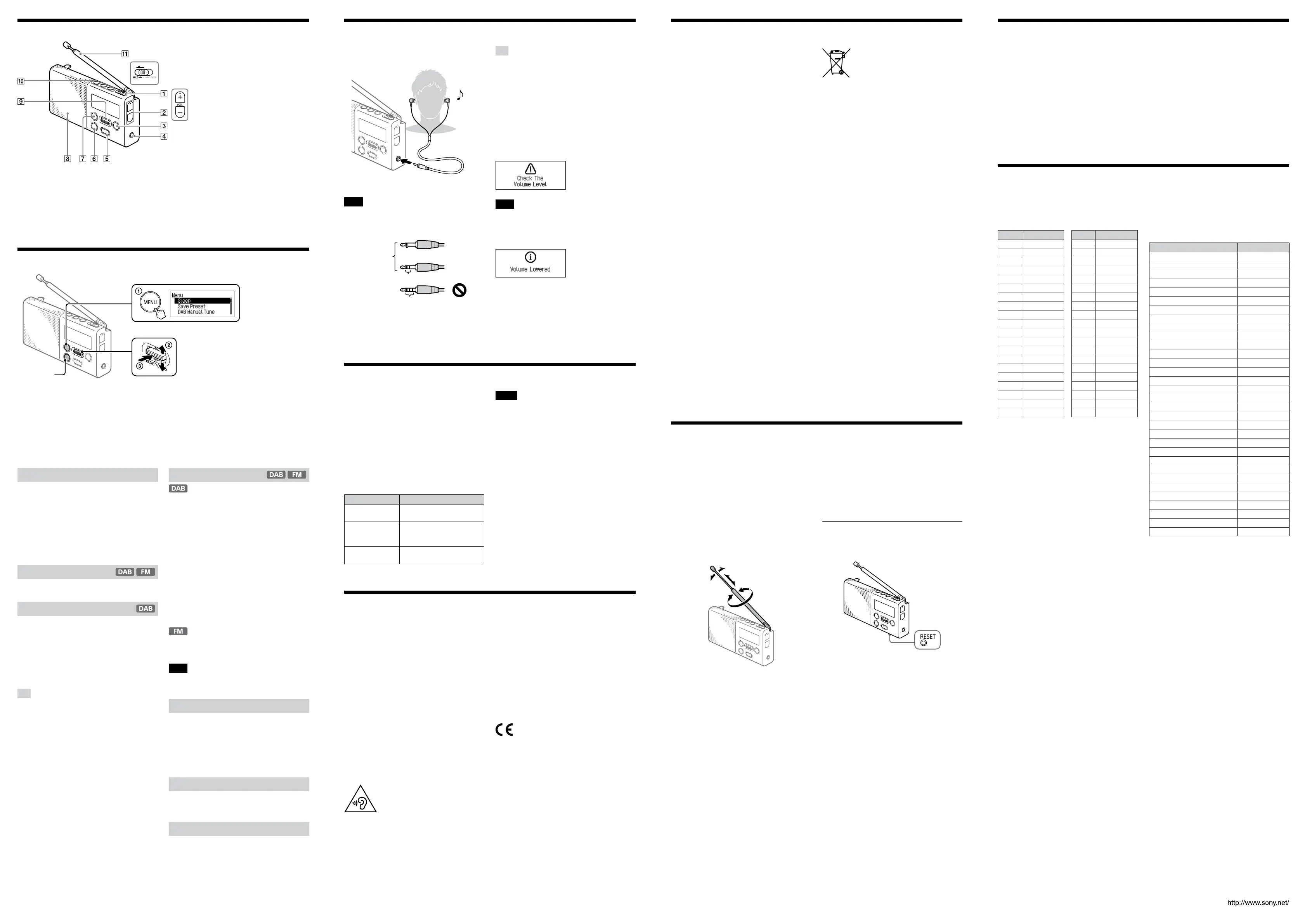 DAB frequency table in “Specifications.”)