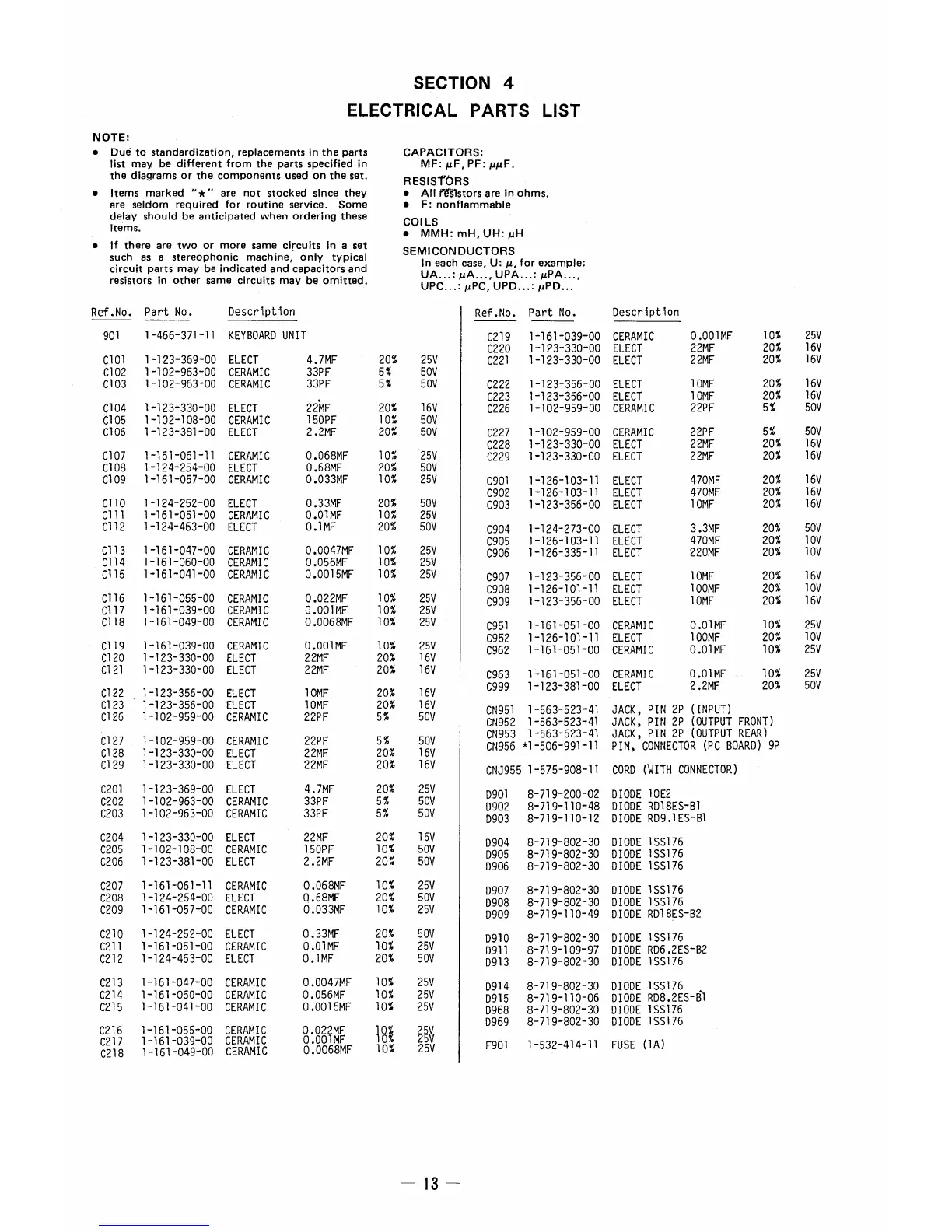 Sony XE-70 - SECTION 4 ELECTRICAL PARTS LIST