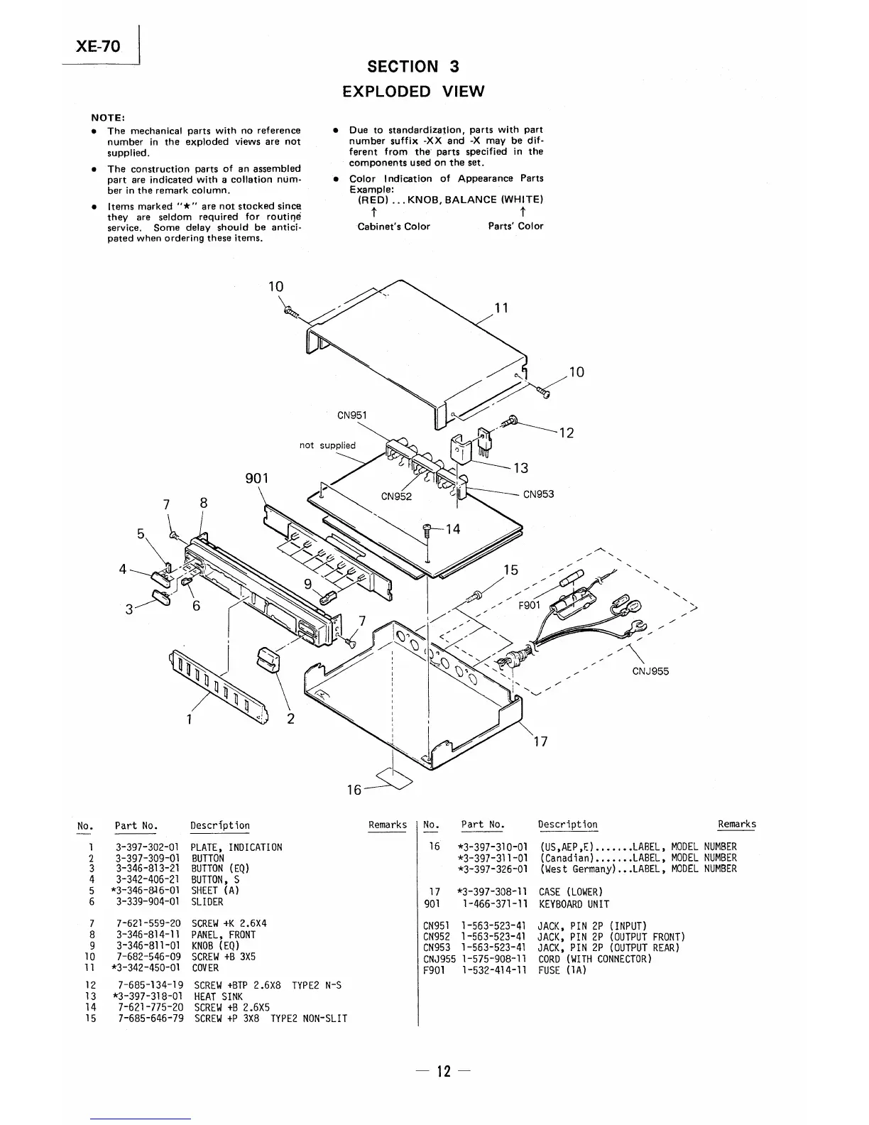 Sony XE-70 - SECTION 3 EXPLODED VIEW