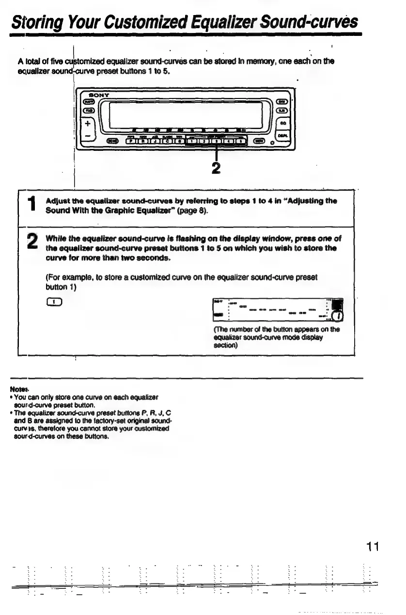Sony XE-744 - Storing Custom Equalizer Sound Curves; Prepare Sound Curves for Storage; Save Customized Curve to Memory