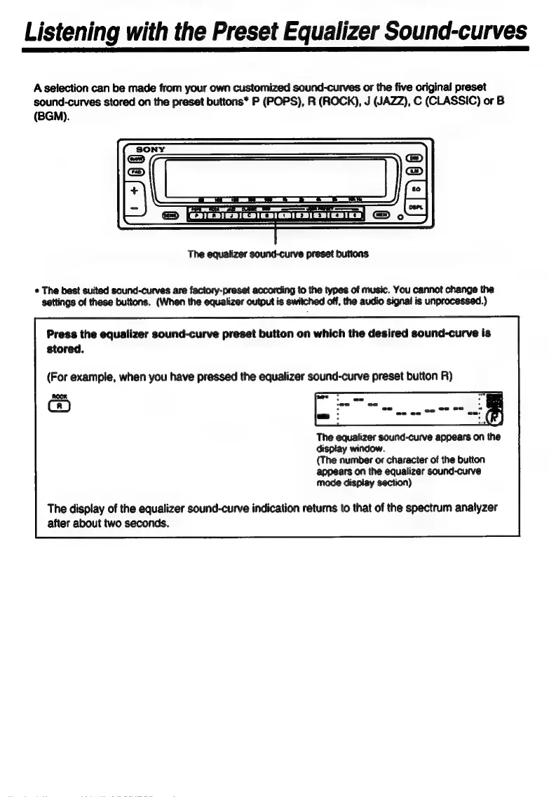 Sony XE-744 - Using Preset Equalizer Sound Curves; Select Desired Preset Curve