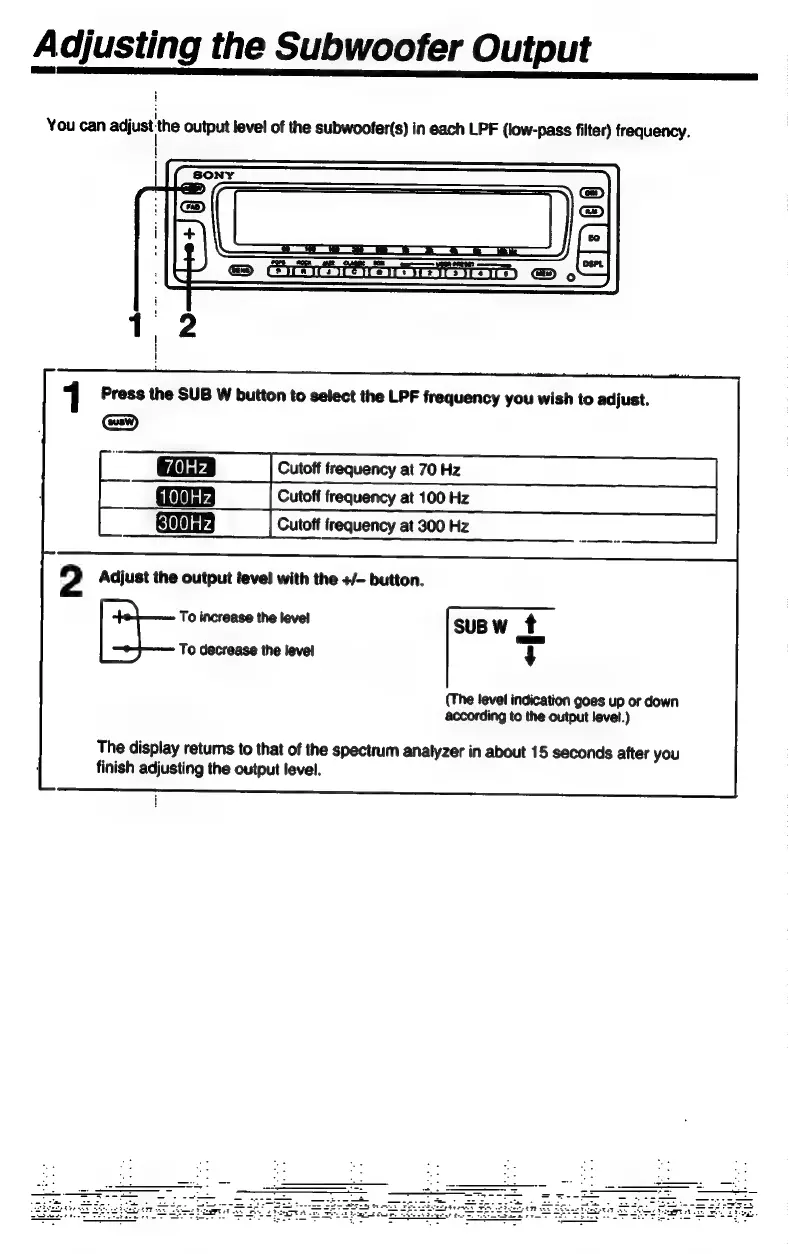 Sony XE-744 - Subwoofer Output Level Adjustment; Select Subwoofer LPF Frequency; Adjust Subwoofer Output Level