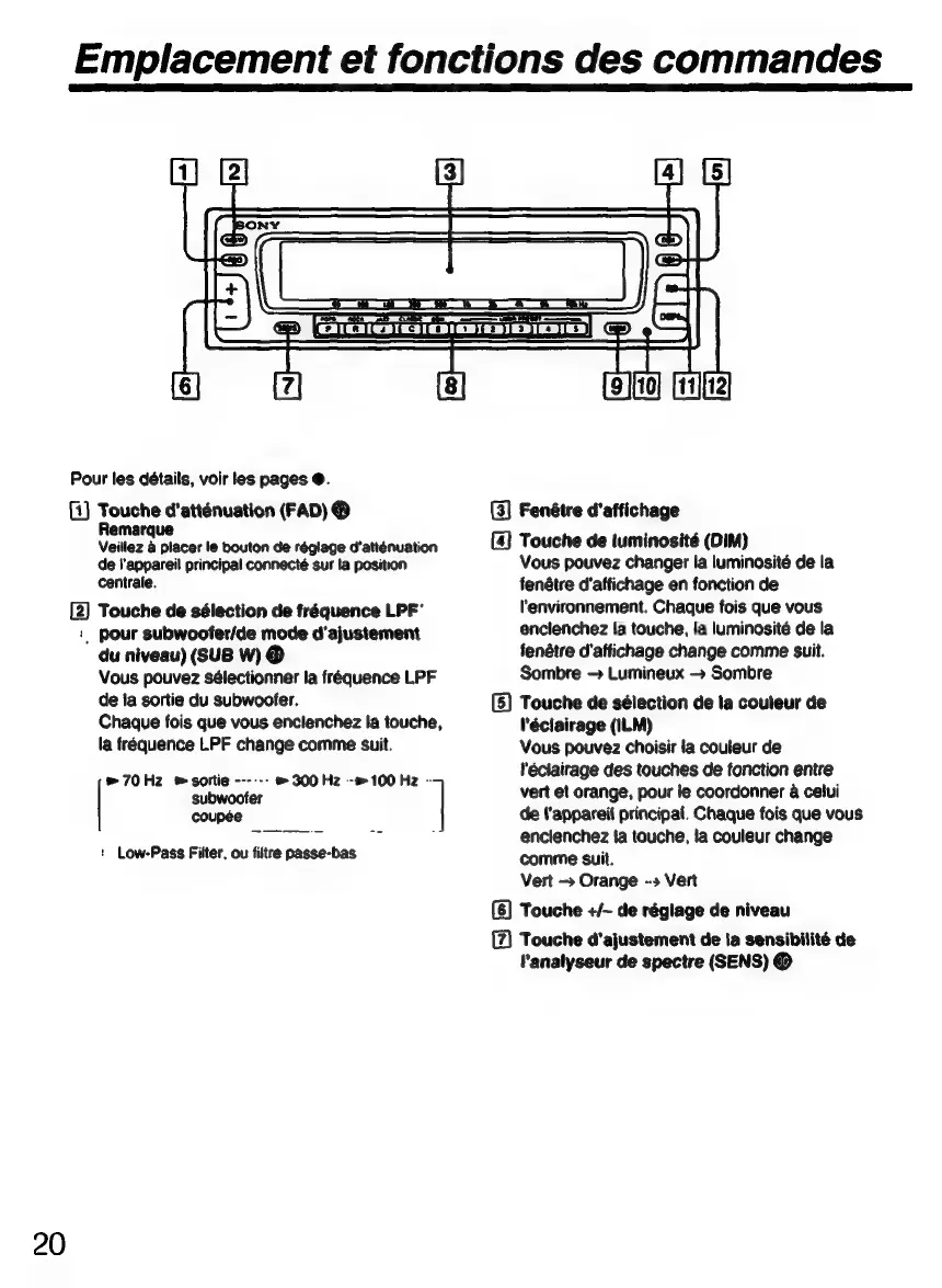 Sony XE-744 - Emplacement et Fonctions des Commandes