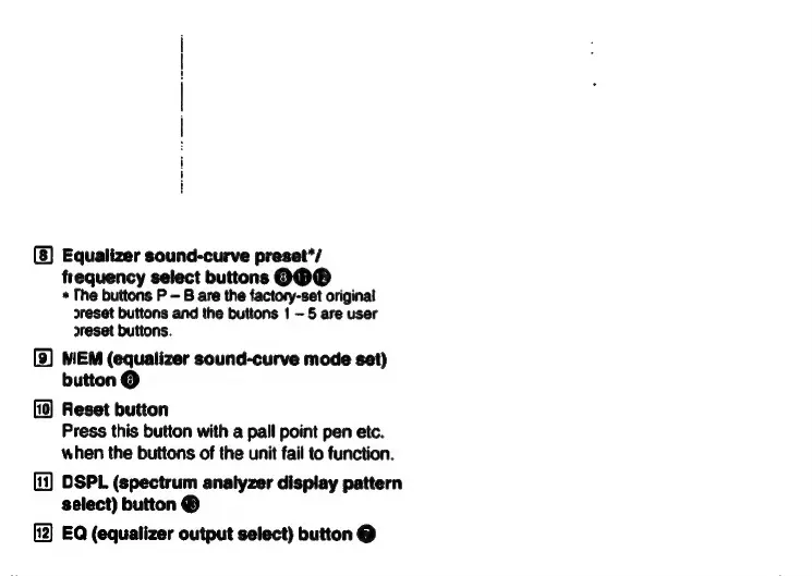 Sony XE-744 - Control Panel Layout - Additional Buttons; Equalizer Preset Buttons; Equalizer Memory Button; Reset Button Operation