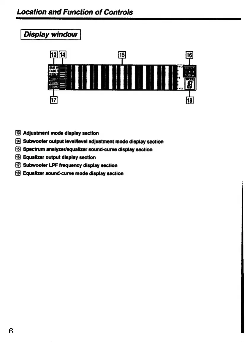 Sony XE-744 - Display Window Indicators; Adjustment Mode Indicator; Subwoofer Level Indicator; Spectrum;Equalizer Display Area