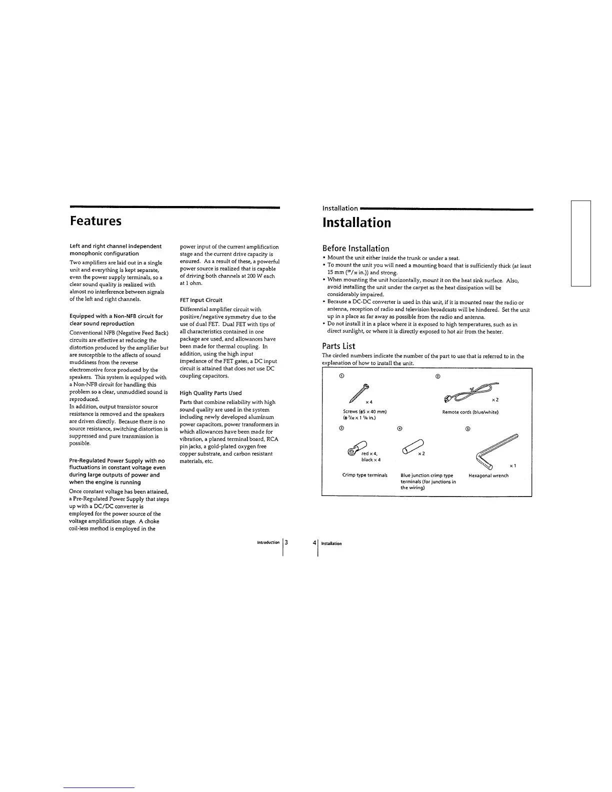 Sony XES-M50 - Features; Installation; Before Installation; Parts List