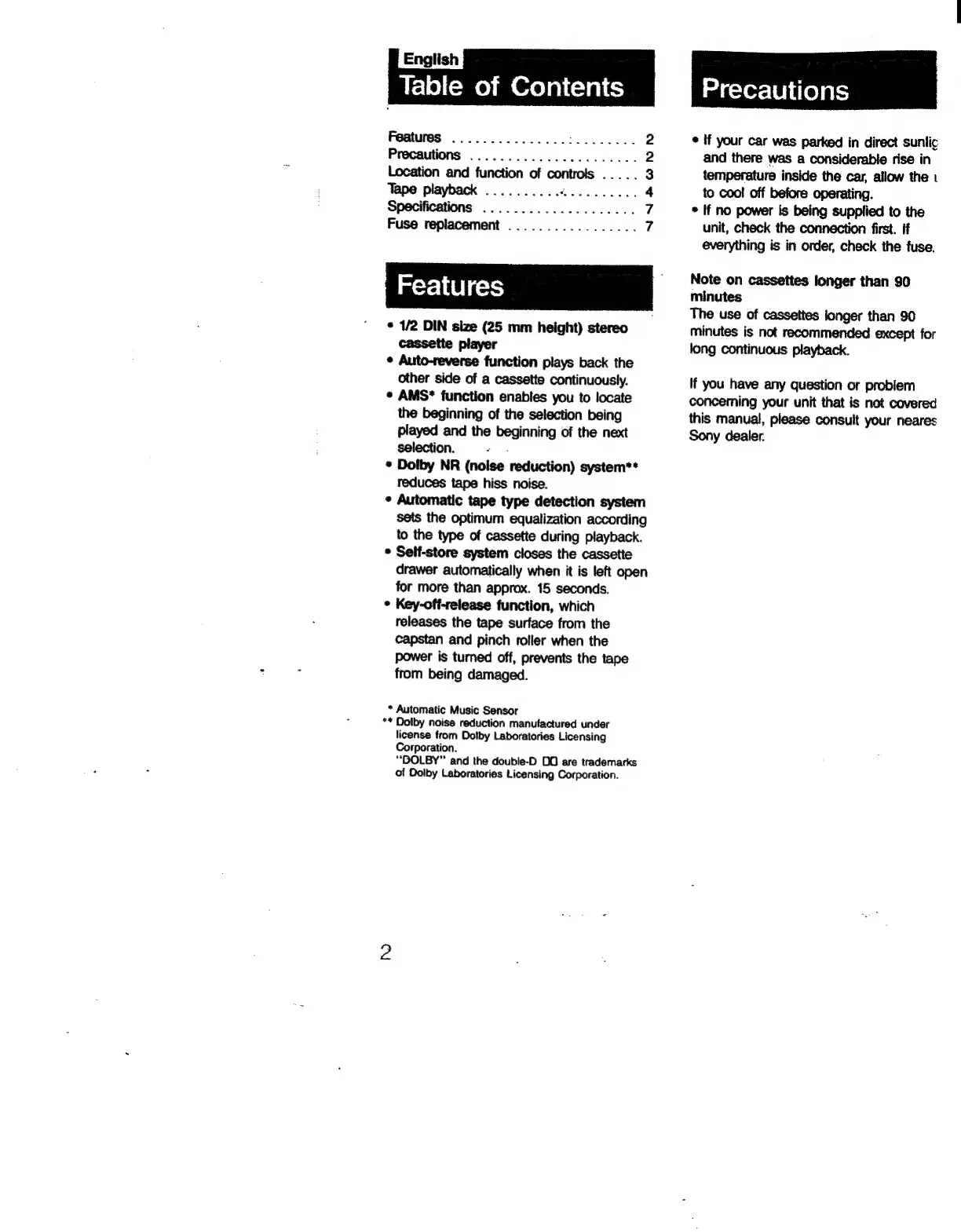 Sony XK-8D - Features; Stereo Cassette Player; Auto-Reverse Function; AMS Function