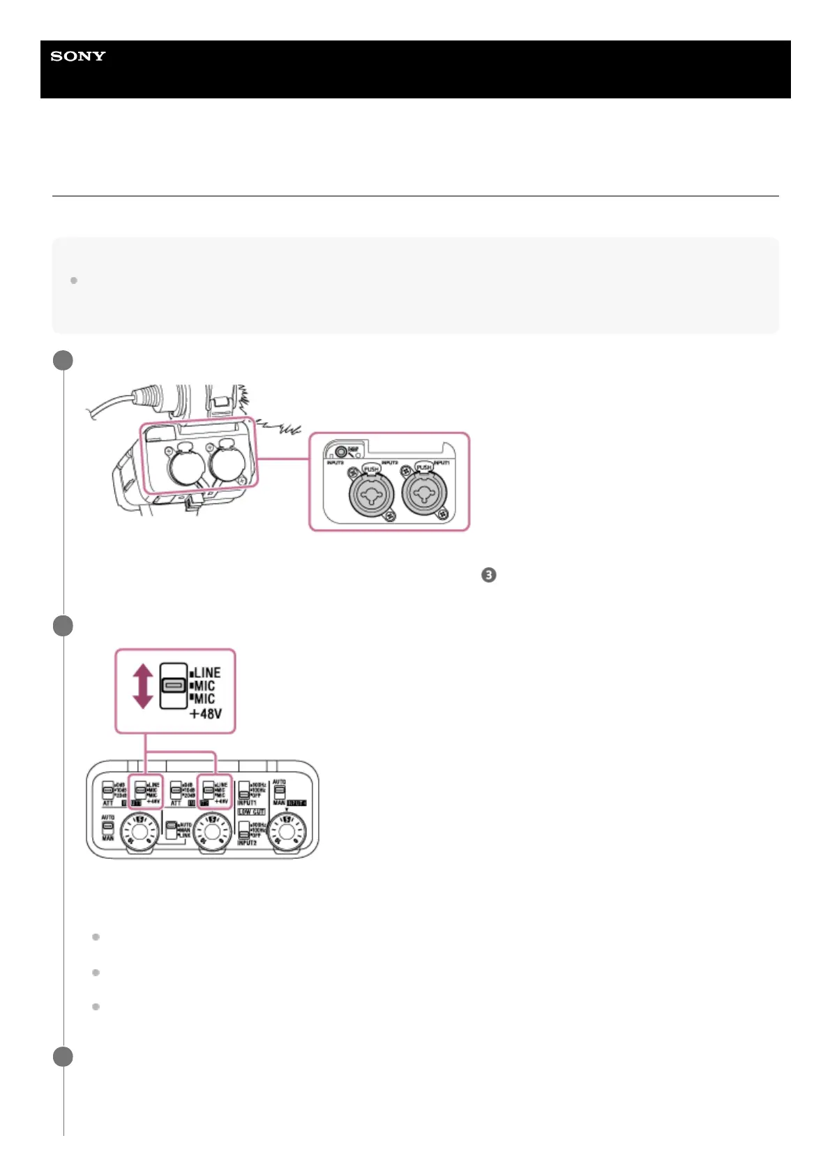 INPUT2 (LINE/MIC/MIC+48V) switch as follows: