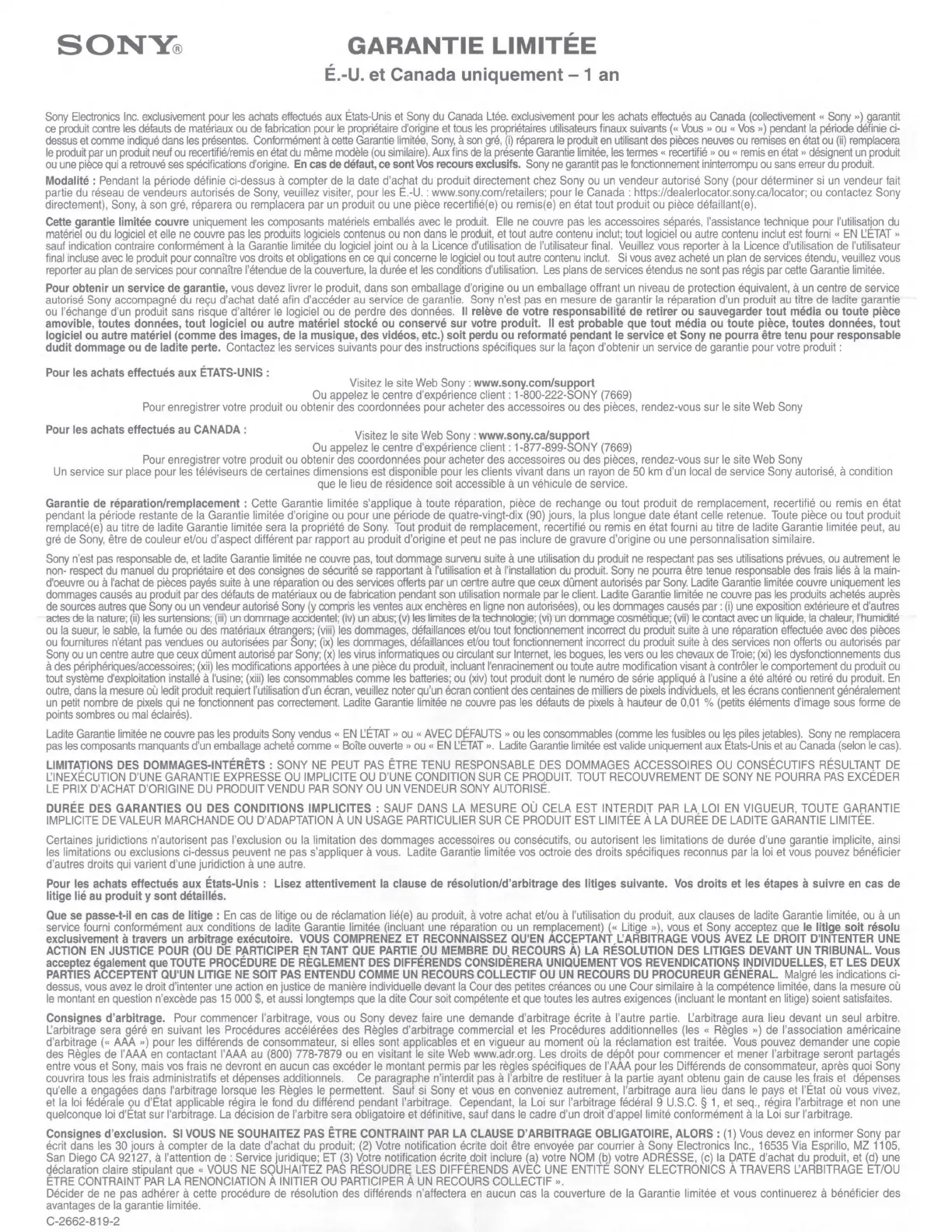 et Canada uniquement - 1 an