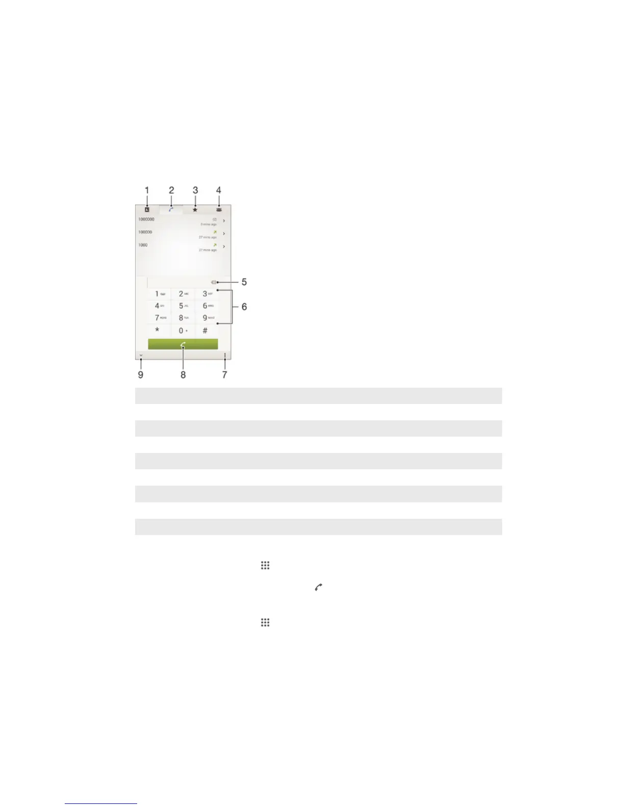 You can make a call by manually dialling a phone number, by tapping a number