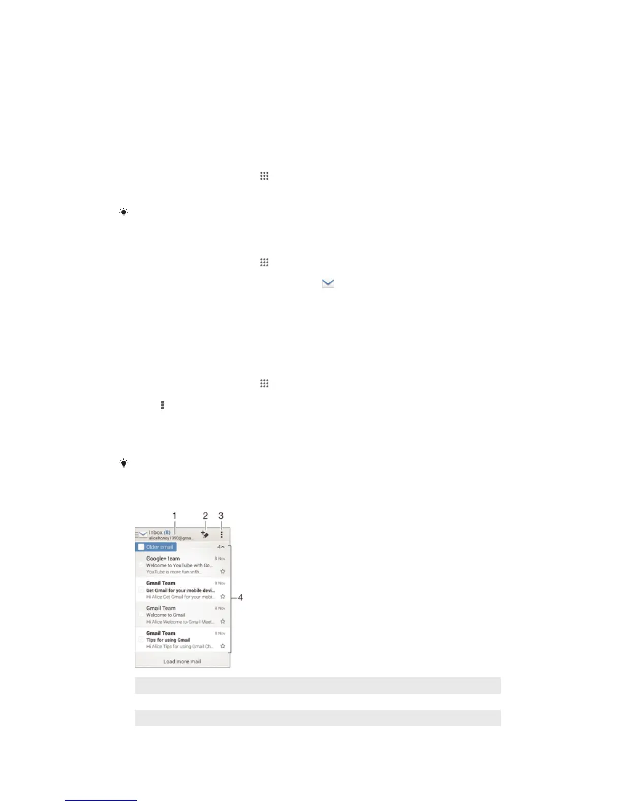 Use the email application in your device to send and receive email messages through