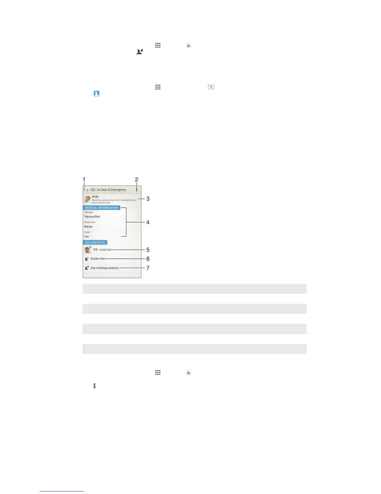 You can add and edit ICE (In Case of Emergency) information in the Contacts