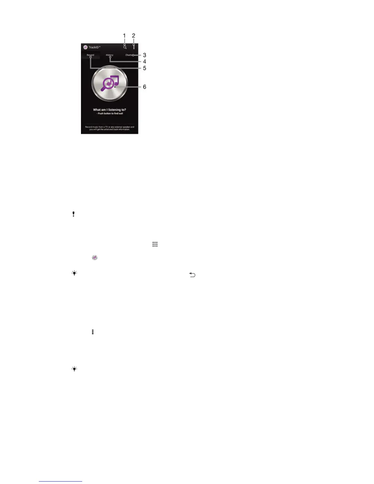 Tap . If the track is recognized by the TrackID™ service, the results appear on