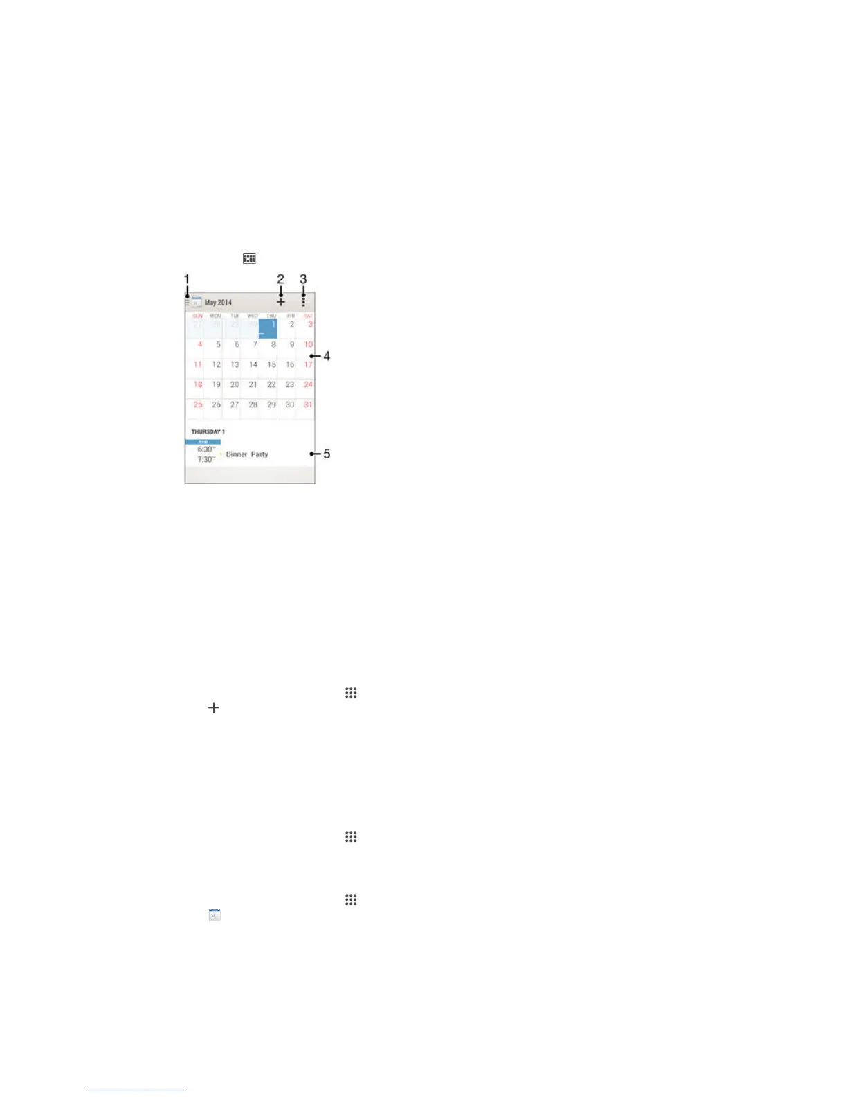 example, your Google™ account or Xperia™ with Facebook account, then calendar