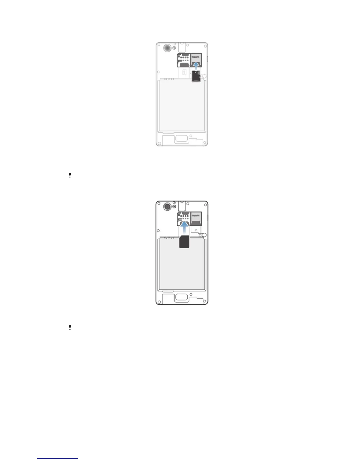 • Remove the battery cover, then insert the micro SIM card into its slot with the