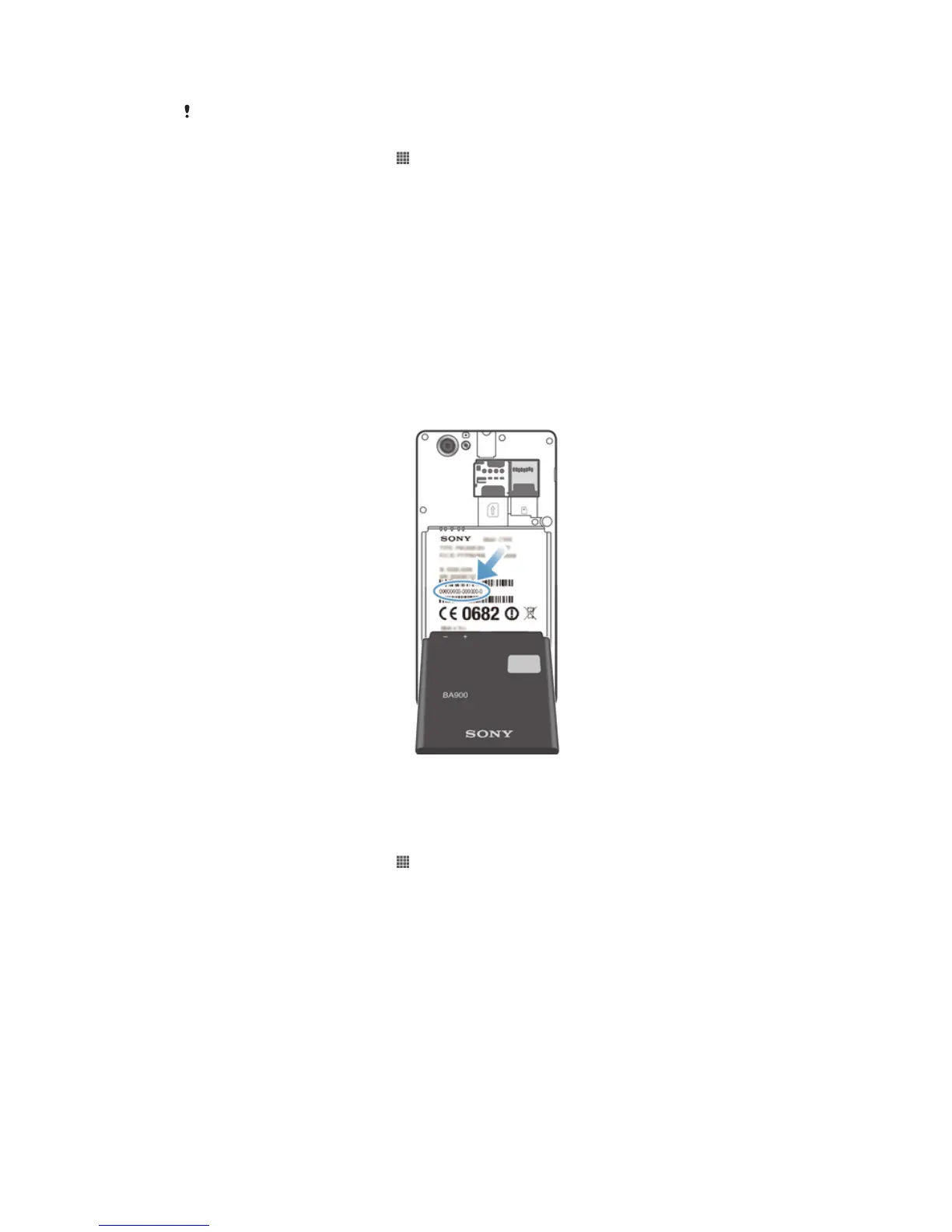• Turn off your device, then remove the battery cover and battery to view your IMEI
