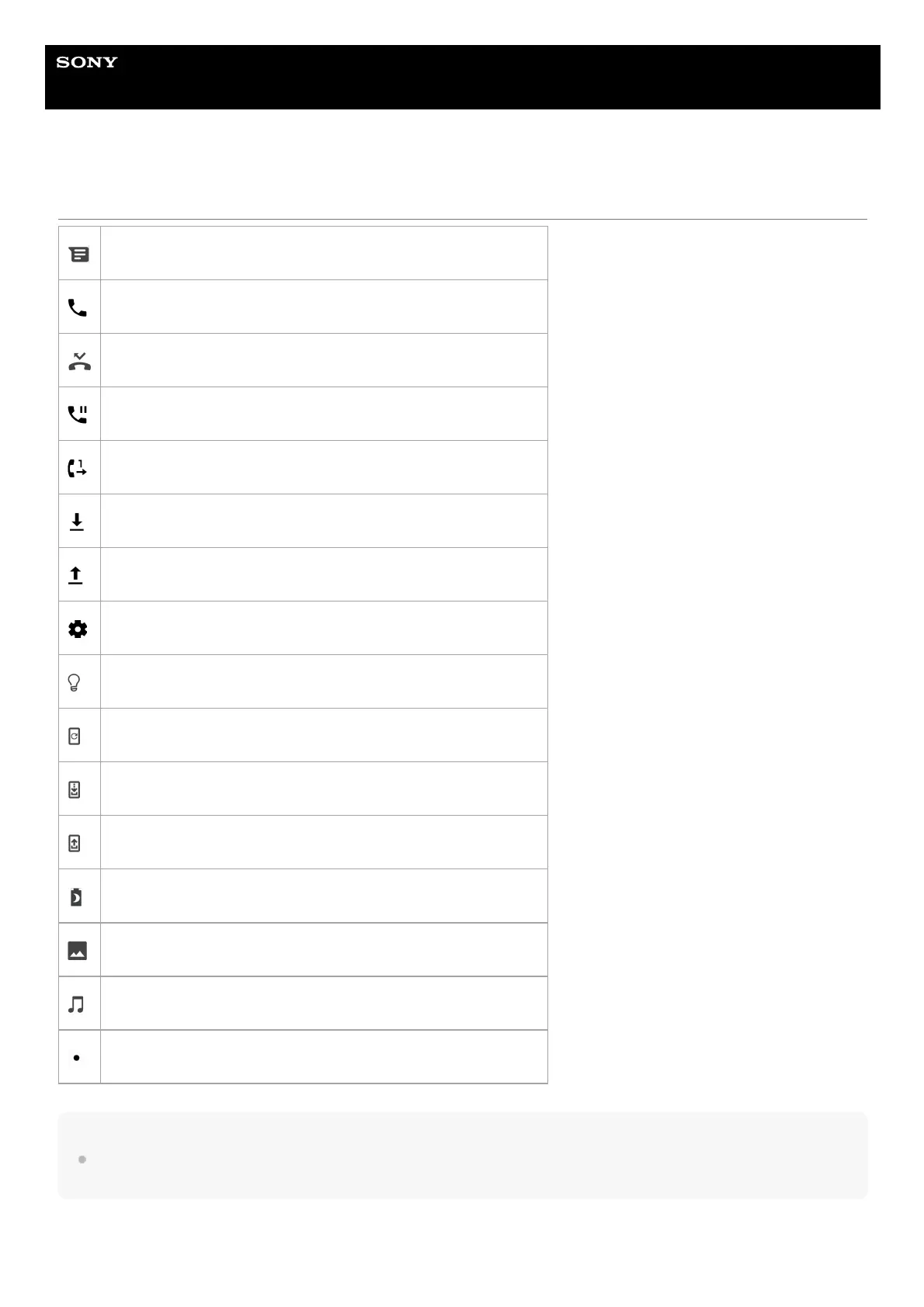 Not all icons that may appear on your device are listed here. This list is for reference purposes only, and changes may be made