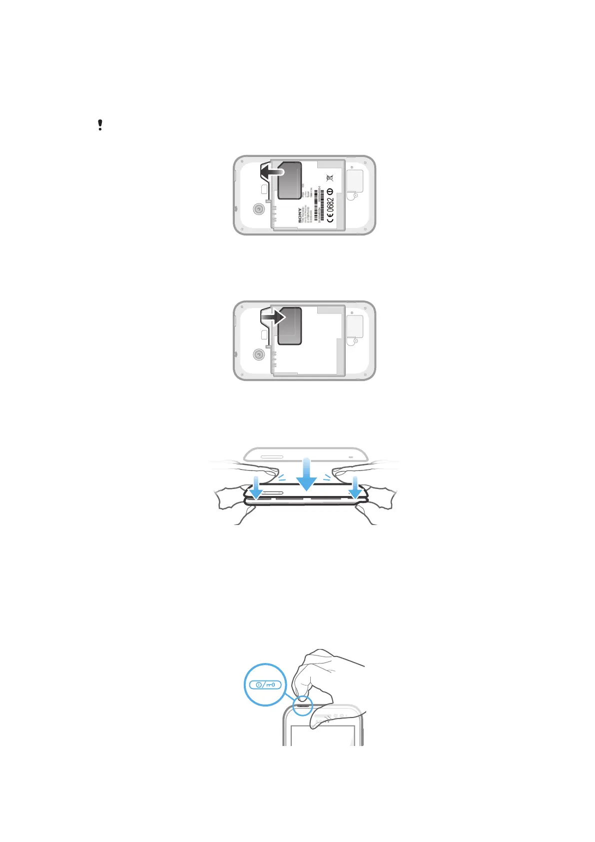Remove the battery cover, then insert the SIM card into its slot with the gold-