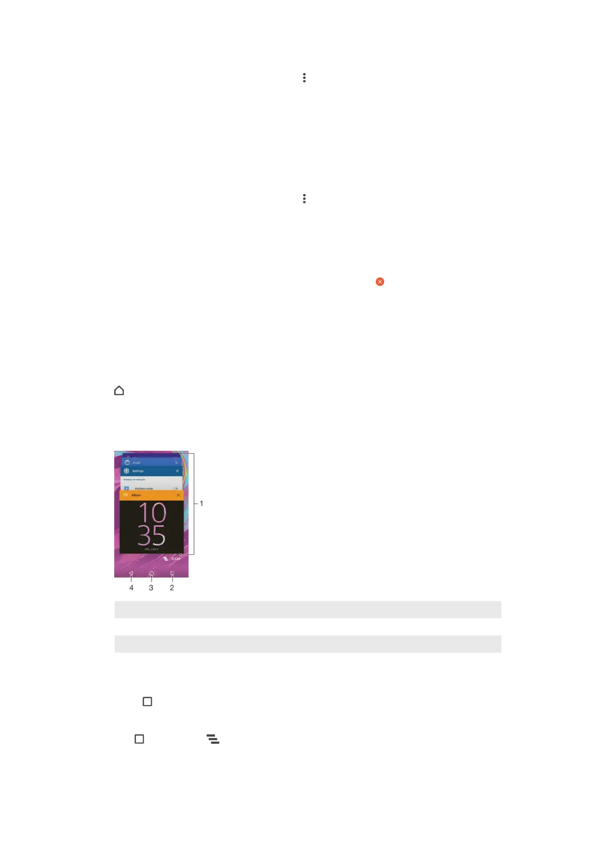 2 Recent apps key – Open the recently used applications window and the favourites bar