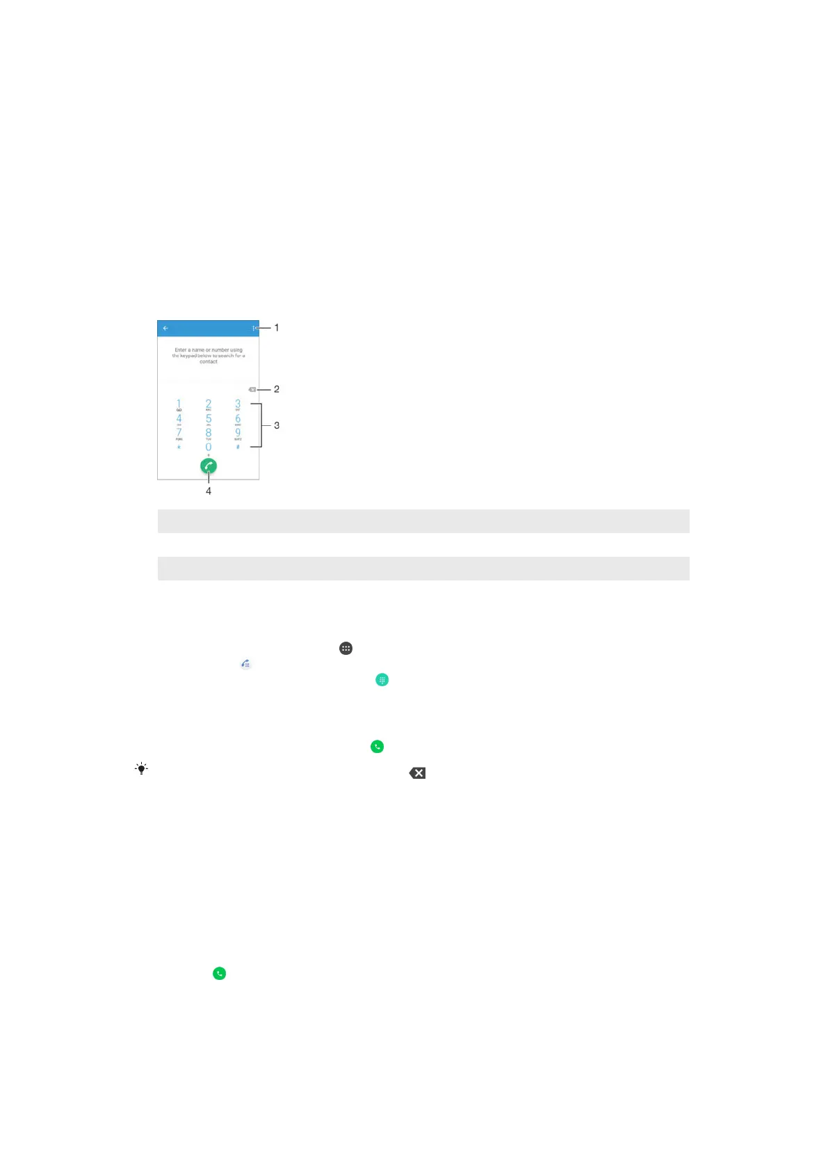 You can make a call by manually dialling a phone number, by tapping a number