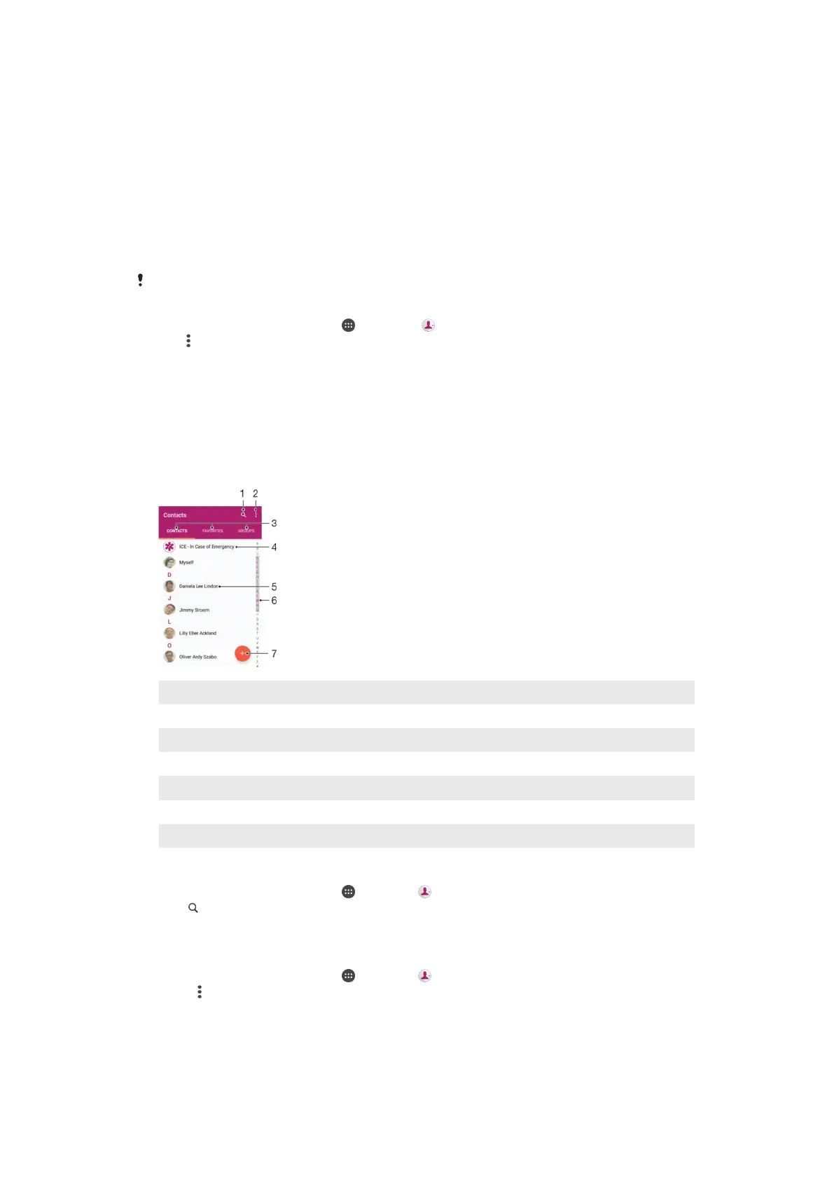 3 Contacts, Favourites and Groups tabs