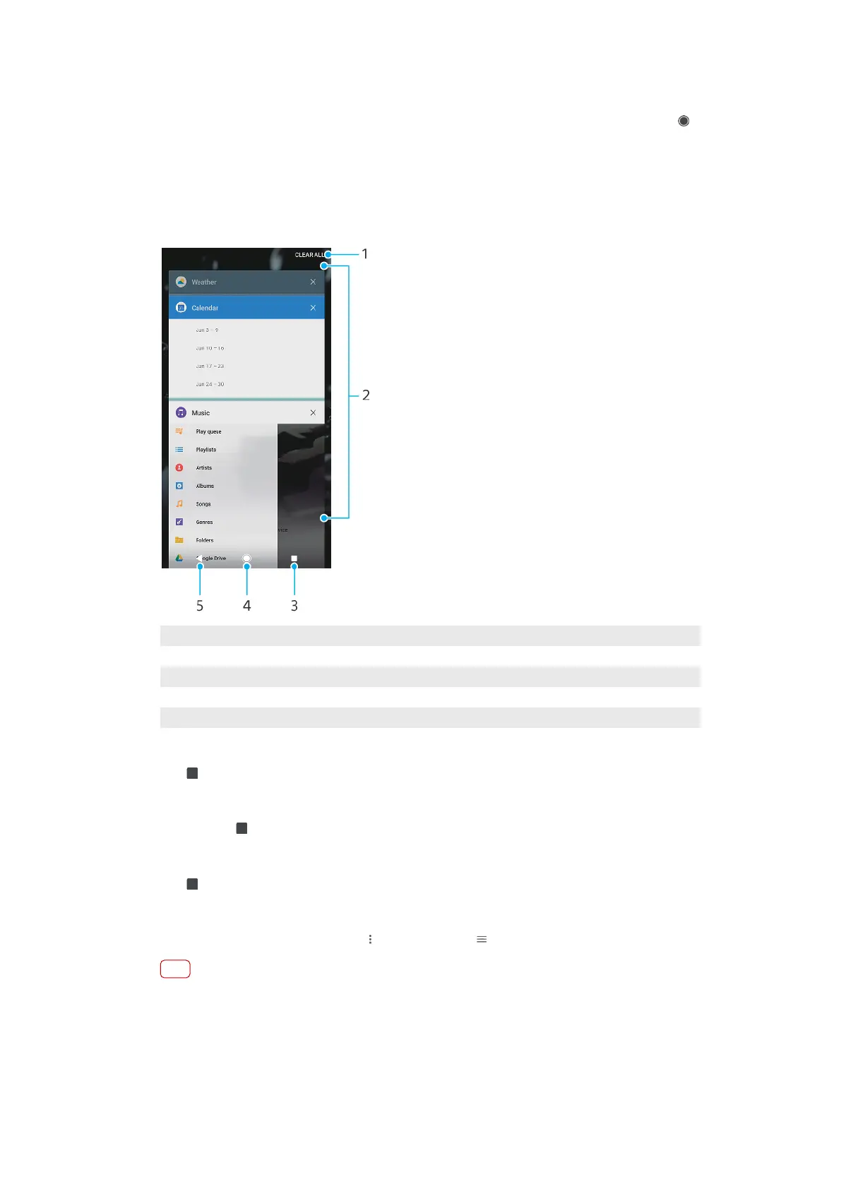 3 Recent apps button – Open the recently used applications window and the favourites bar