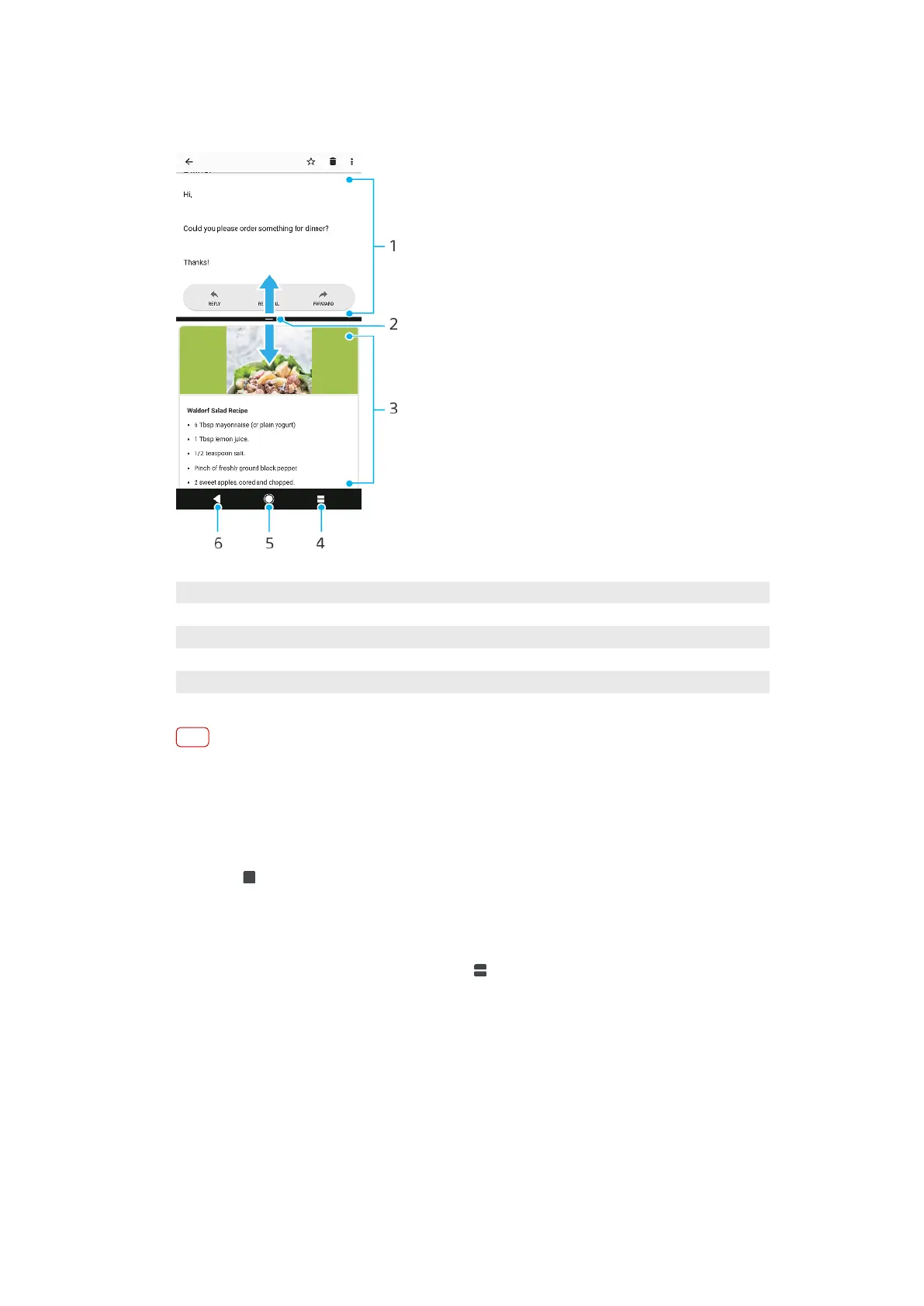 4 Split screen button – Select a recently used application