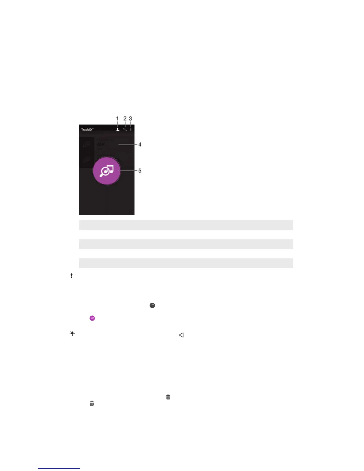 Tap . If the song is recognized by the TrackID™ service, the results appear on