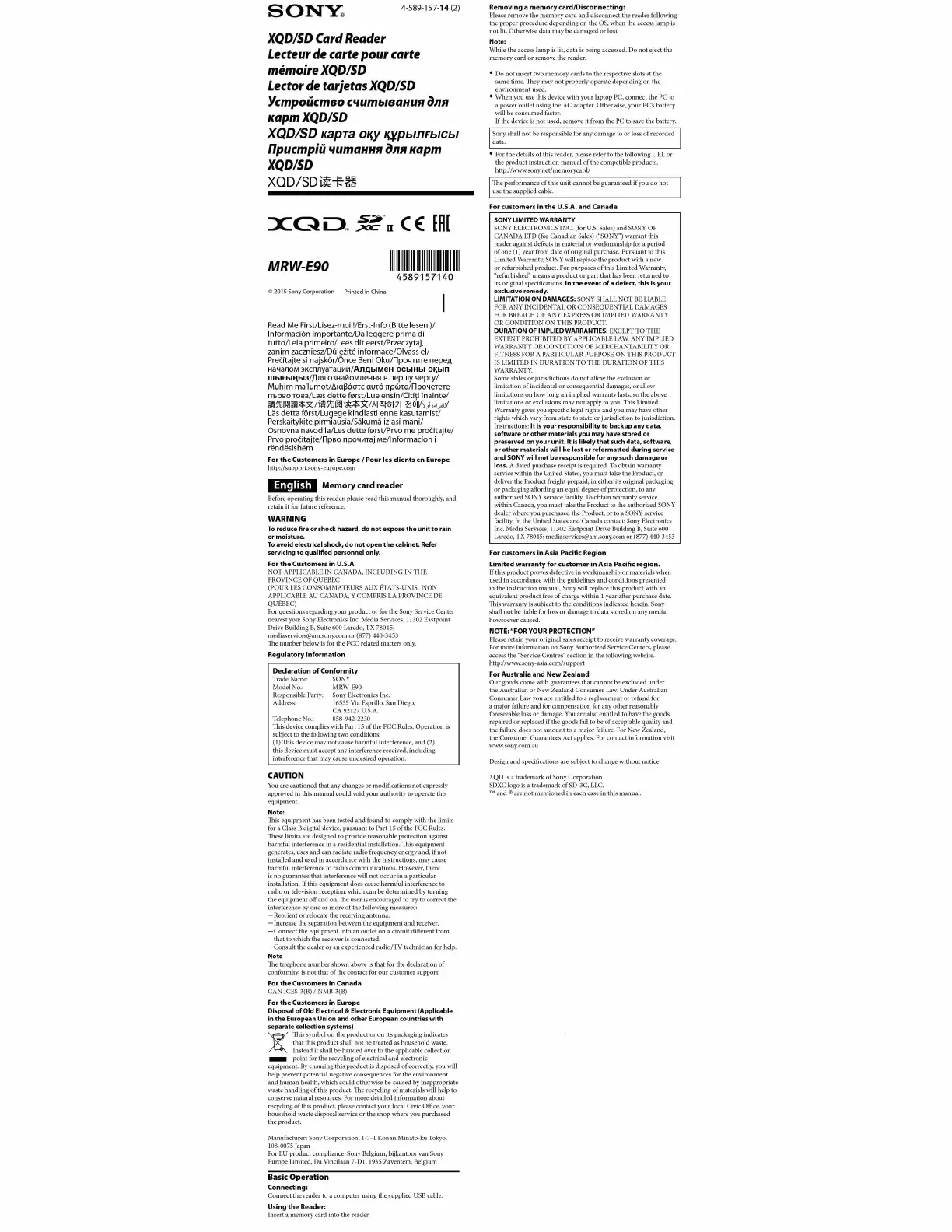 © 2015 Sony Corporation Printed in China