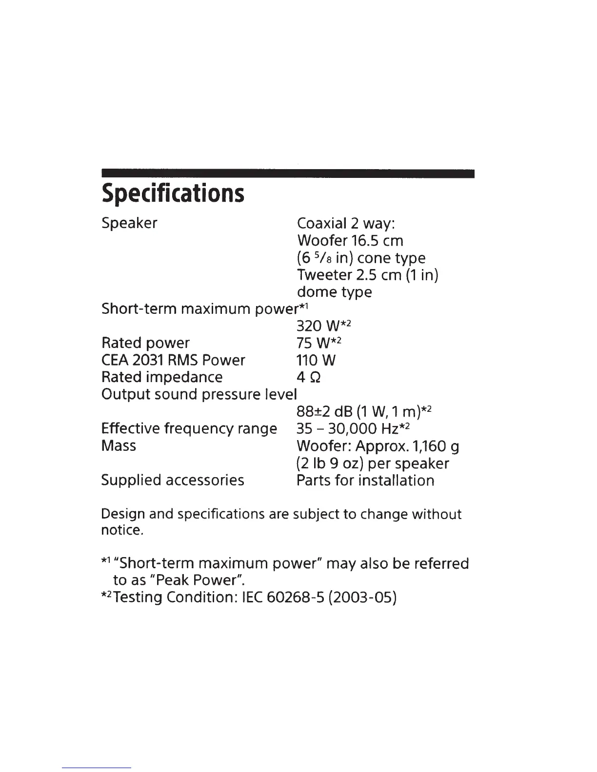 Sony XS-GS1621 - Specifications