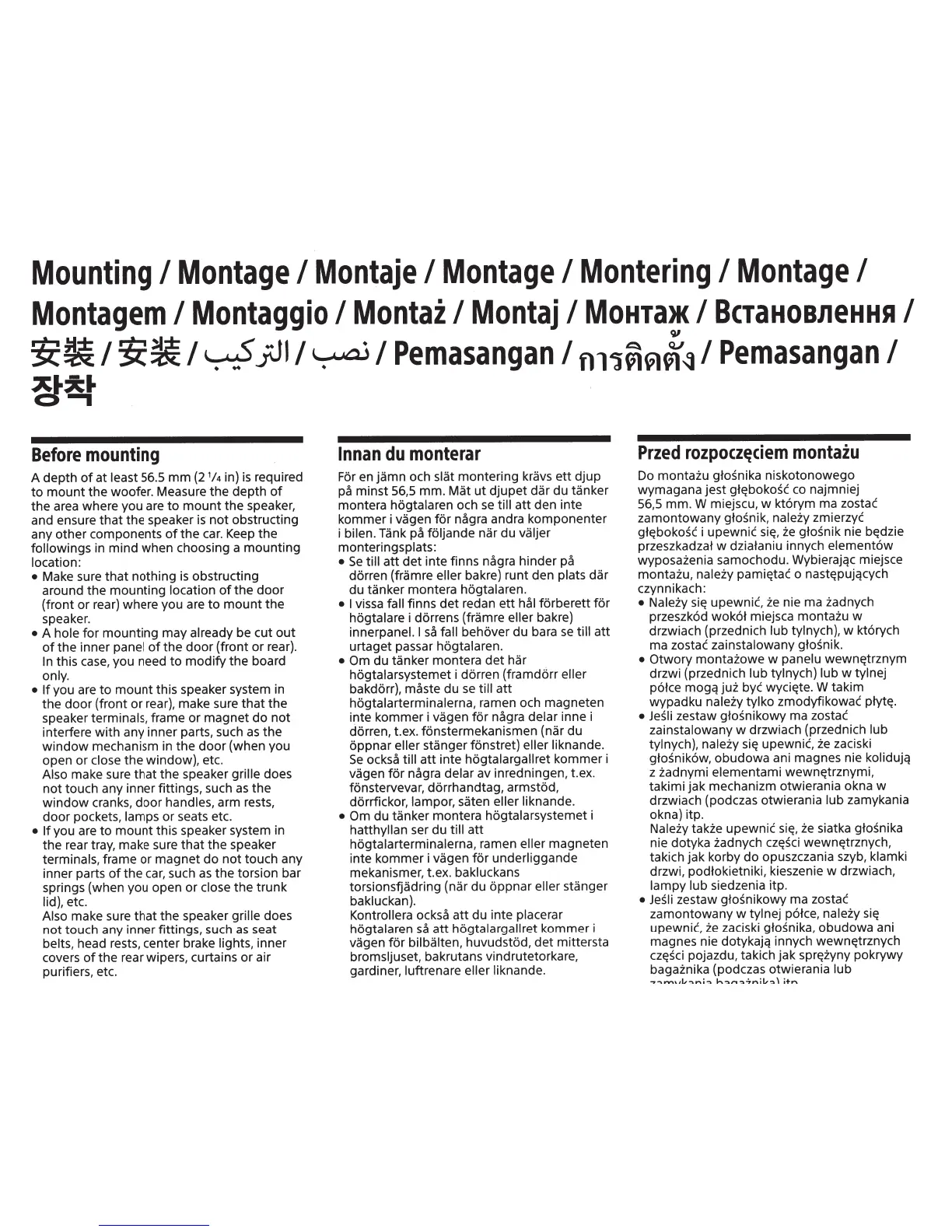 zainstalowany w drzwiach (przednich