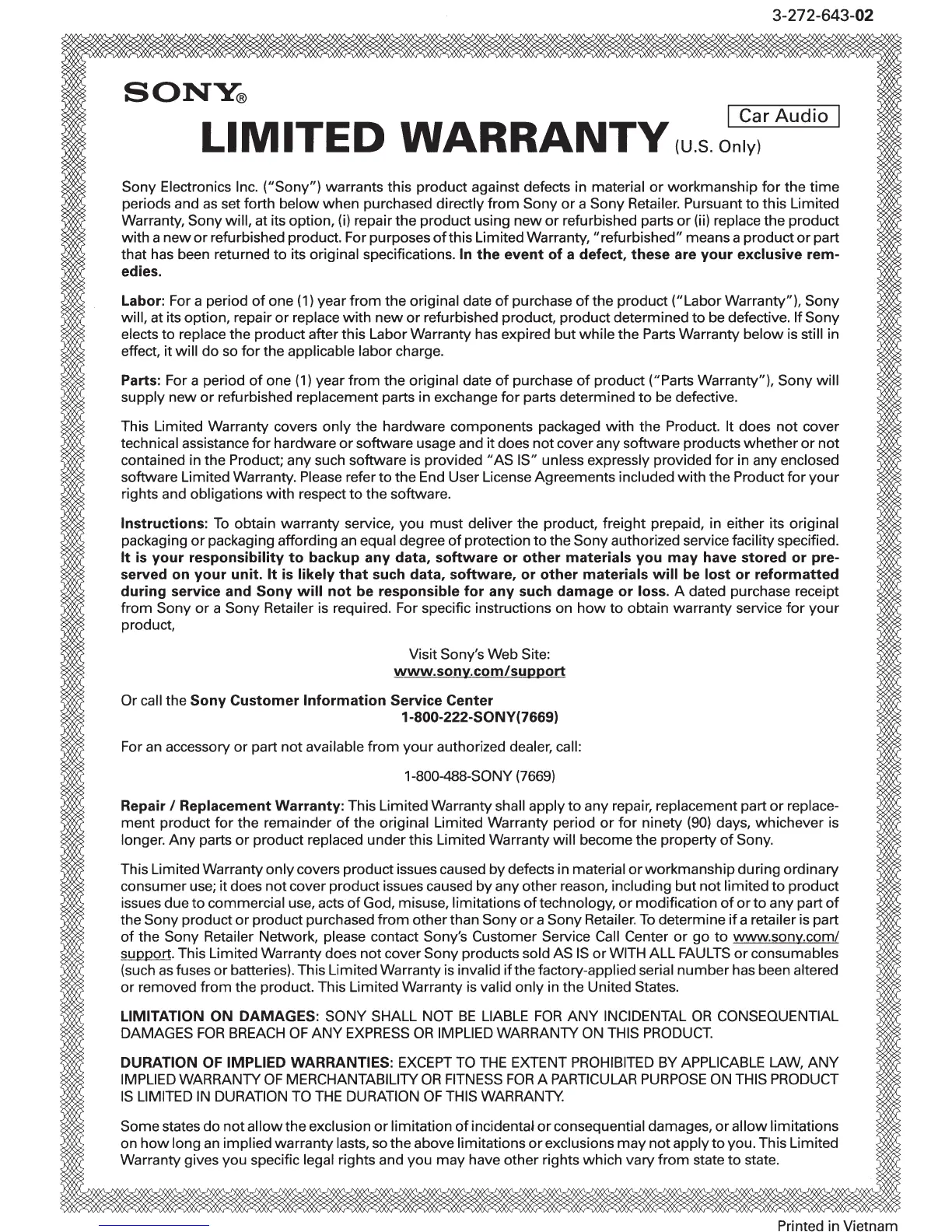 the Sony Retailer Network, please contact Sony's Customer Service Call Center