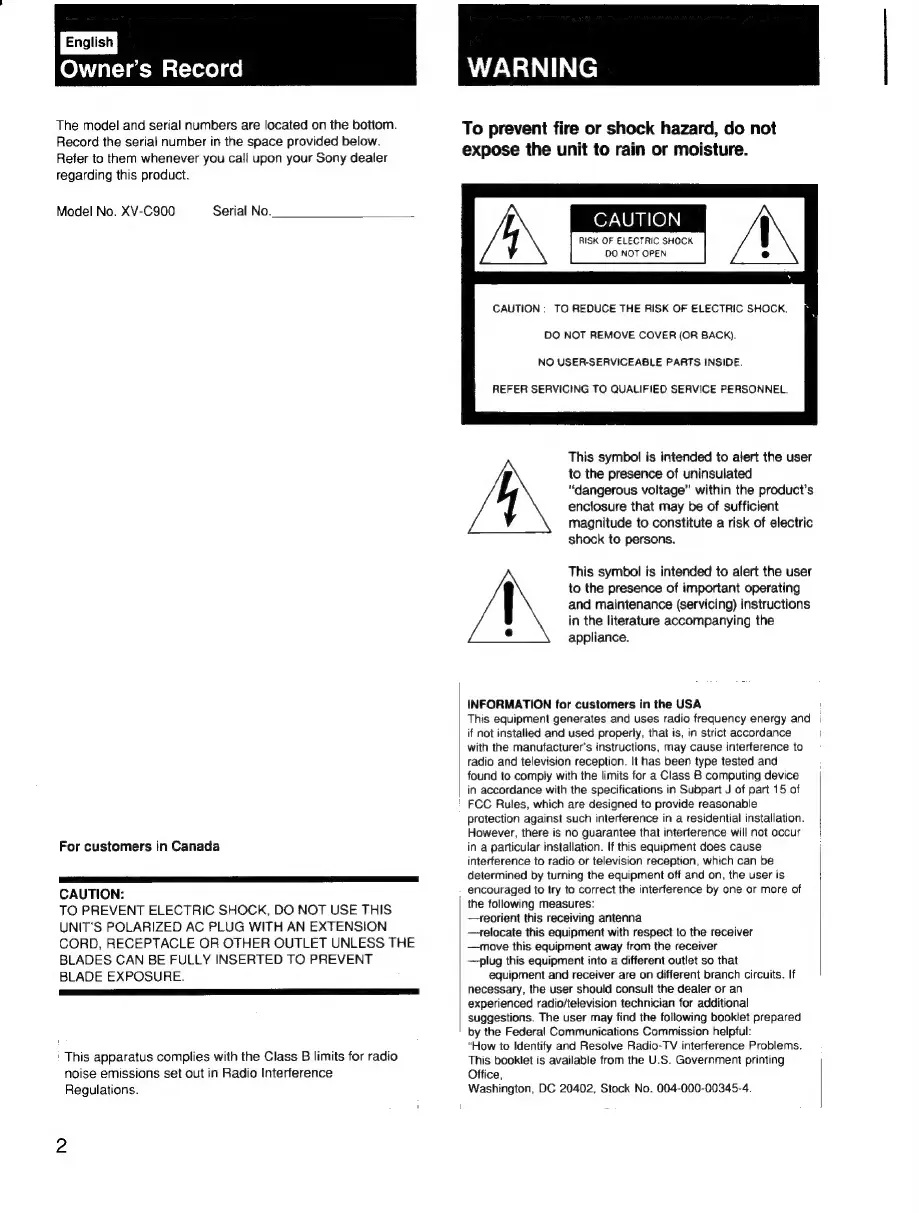 Sony XV-C900 - Page 2