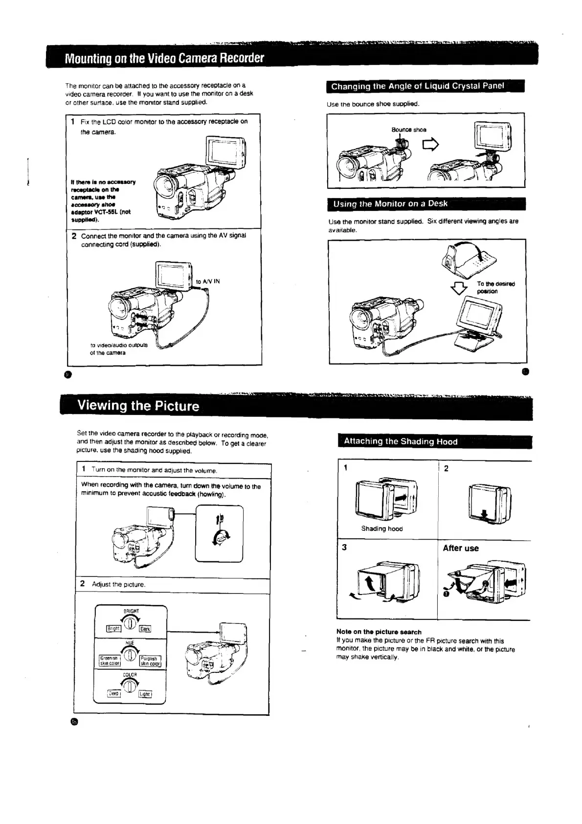 Sony XV-M30 - Mounting and Operation; Mounting on Camera; Picture Viewing Adjustments