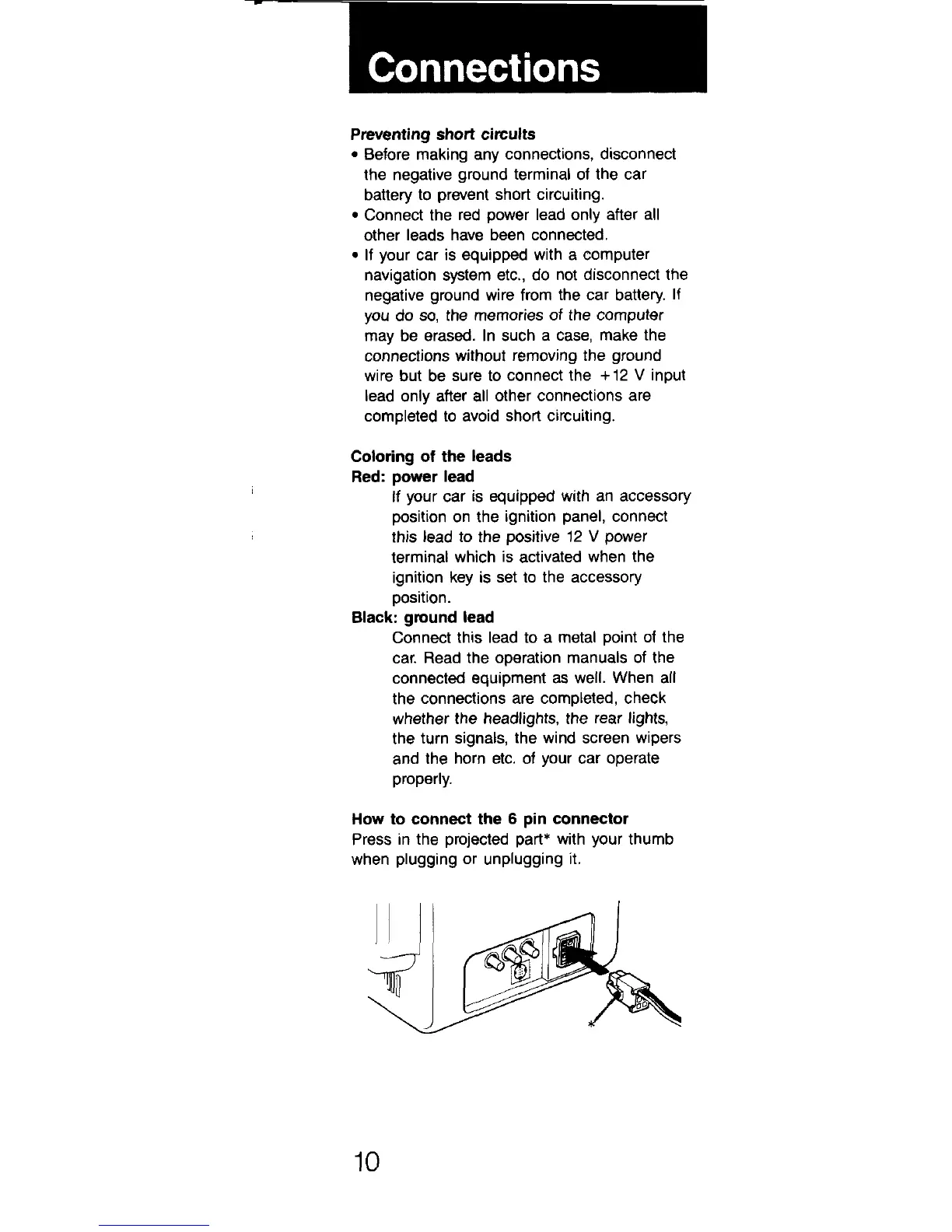 Sony XVM-80 - Connections; Preventing Short Circuits; Coloring of the Leads