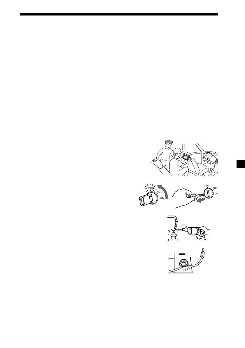 出鑰匙。在引擎開啟時安裝本裝置會造成電池漏