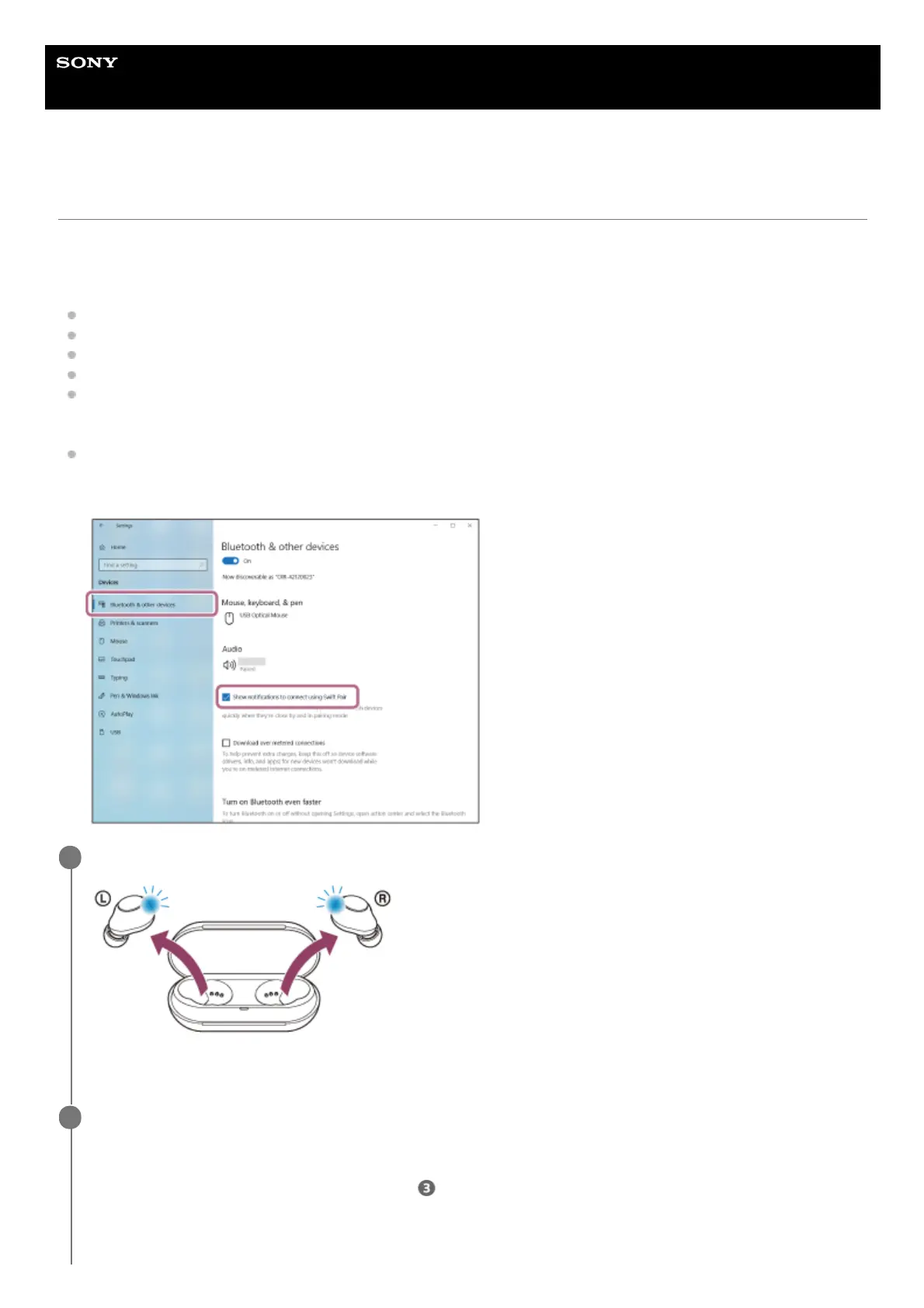 If your OS version is Windows 10 version 1803 or later, the Swift Pair function will make pairing easier. To use the