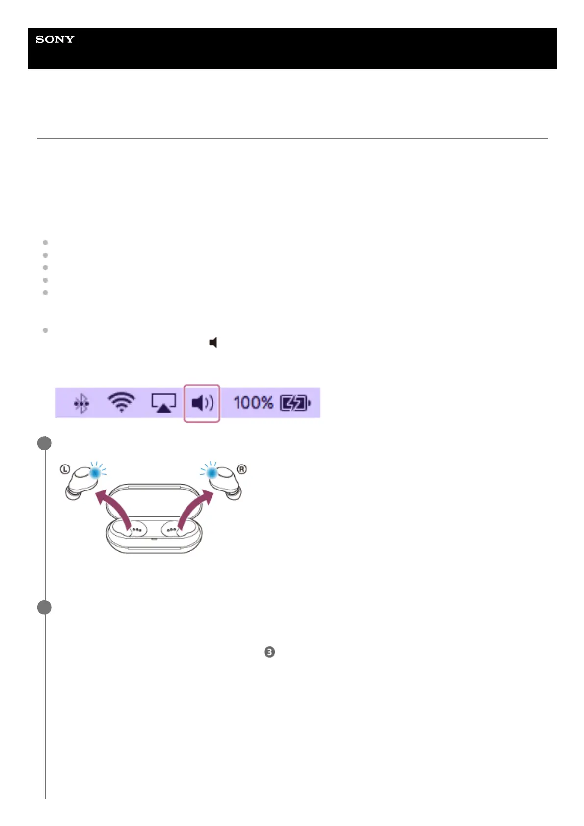 The headset turns on automatically. Check that the indicators (blue) flash.