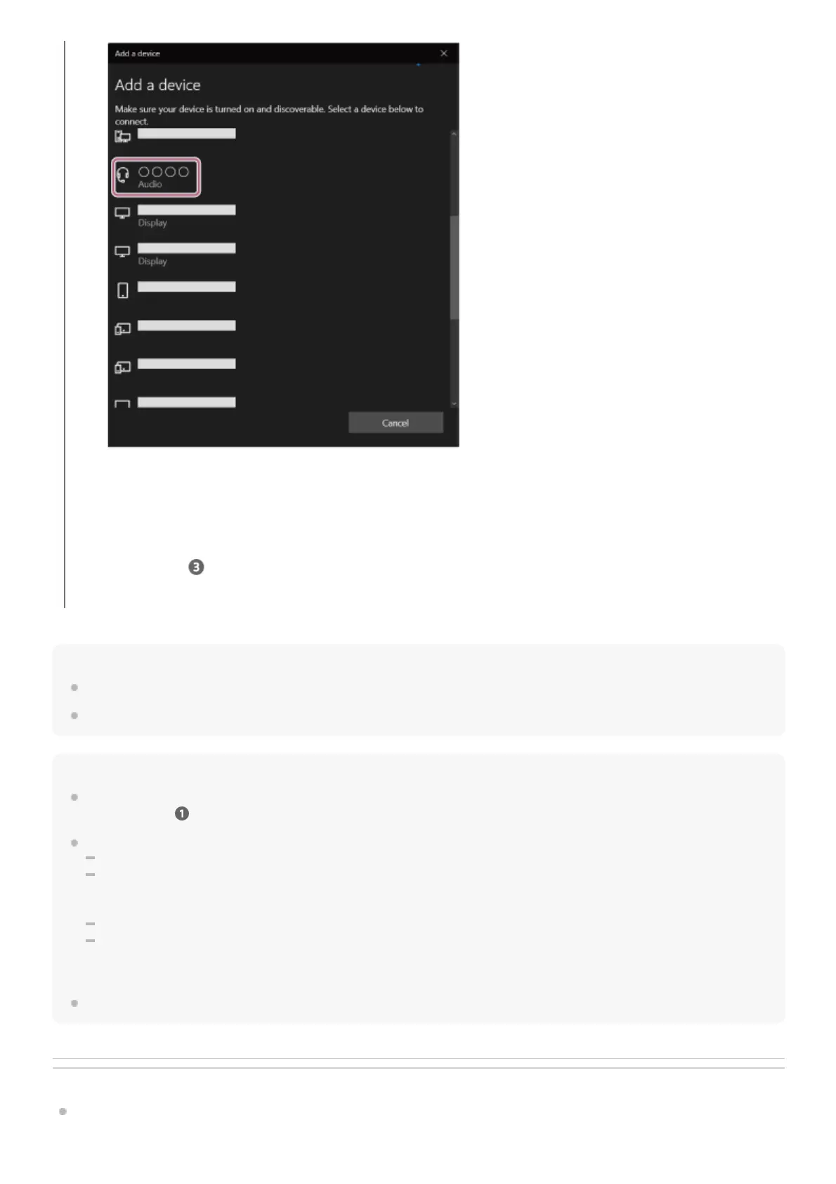 If [WI-C100] does not appear on the computer screen, try again from “To connect without using the Swift Pair