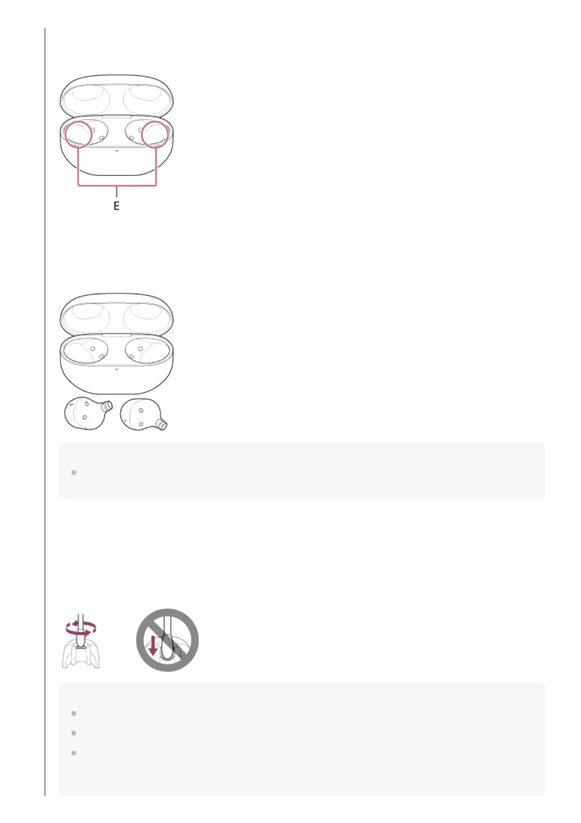 E: Holes of the charging case (left, right)