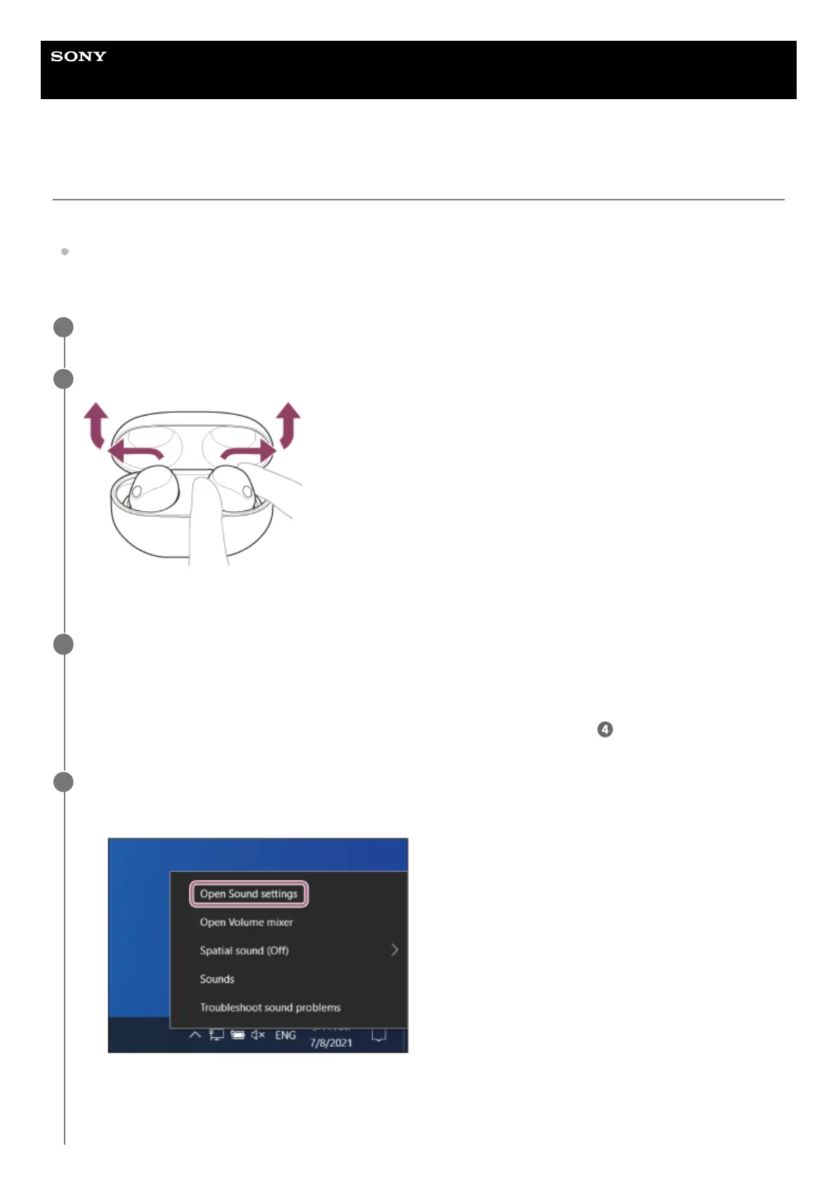 Right-click the speaker icon on the toolbar, then select [Open Sound settings].