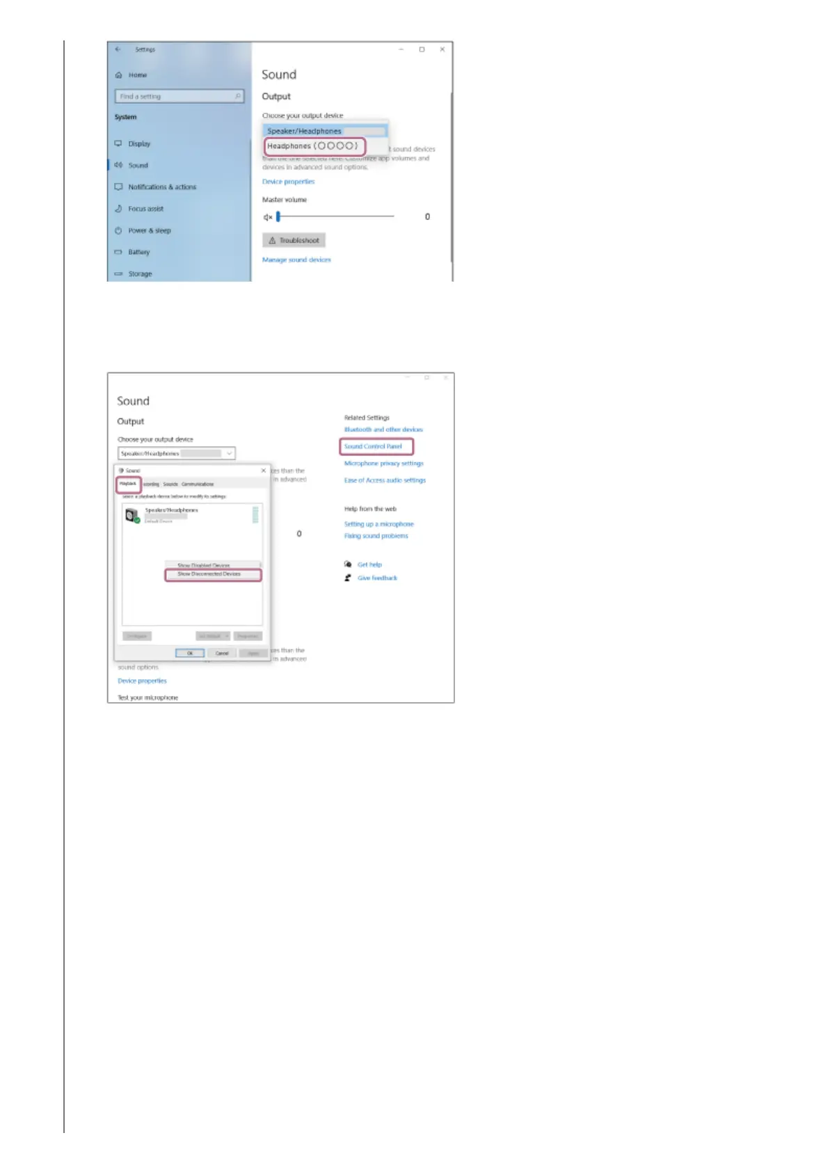Click [Sound Control Panel], right-click on the [Playback] tab on the [Sound] screen, and check the [Show