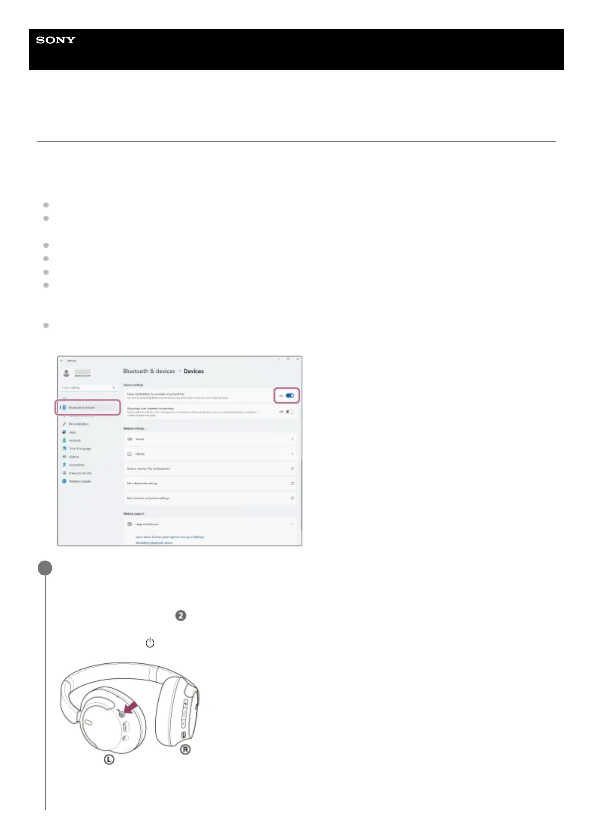 [Bluetooth & devices] - [Show notifications to connect using Swift Pair] switch to turn on the Swift Pair function.