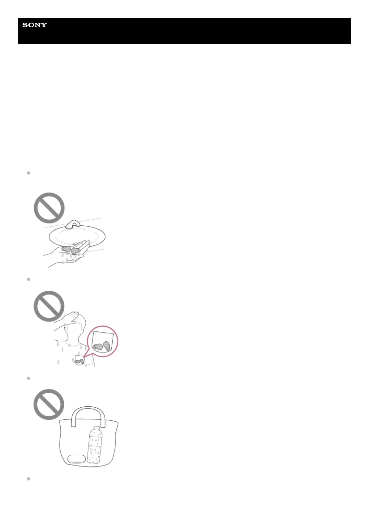 Avoid the following situations and be careful not to get moisture or dirt on the headset units or charging case.