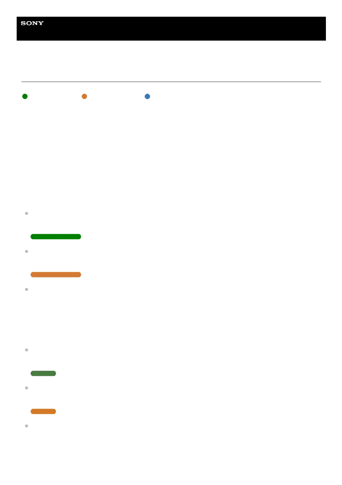 : Turns on in green / : Turns on in orange / : Turns on in blue / -: Turns off