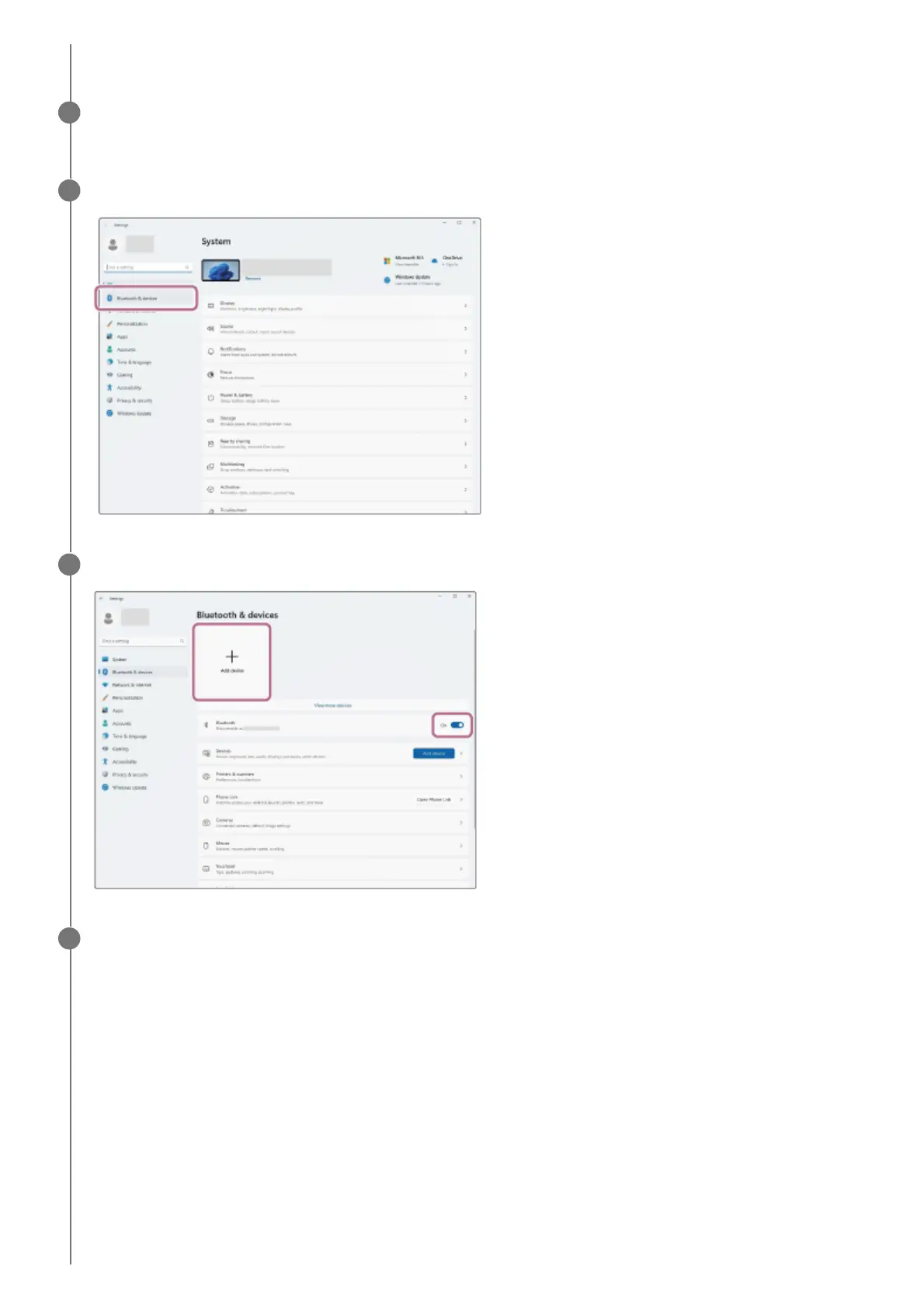 Click the [Bluetooth] switch to turn on the Bluetooth function, then click [Add device].