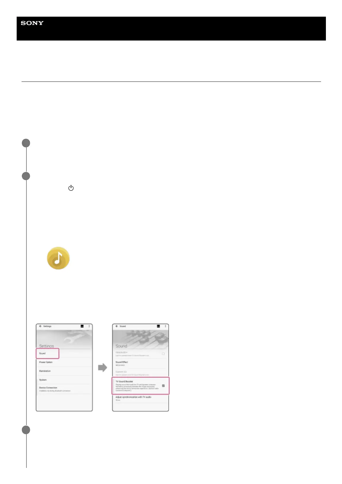 Use the “Sony | Music Center” to make setup of the TV Sound Booster function.
