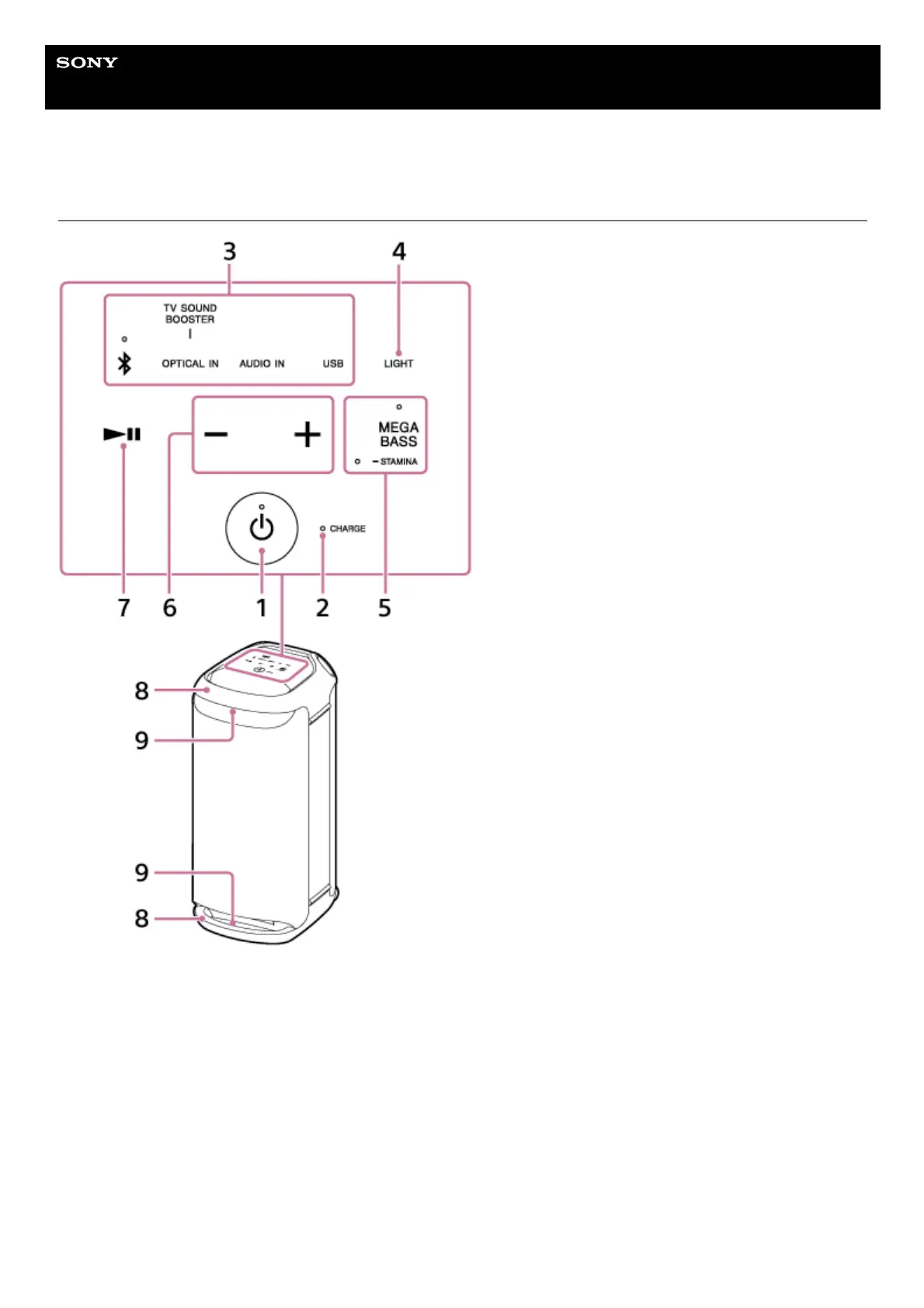 Sony YY7854E - Parts and Controls; Speaker Components and Indicators