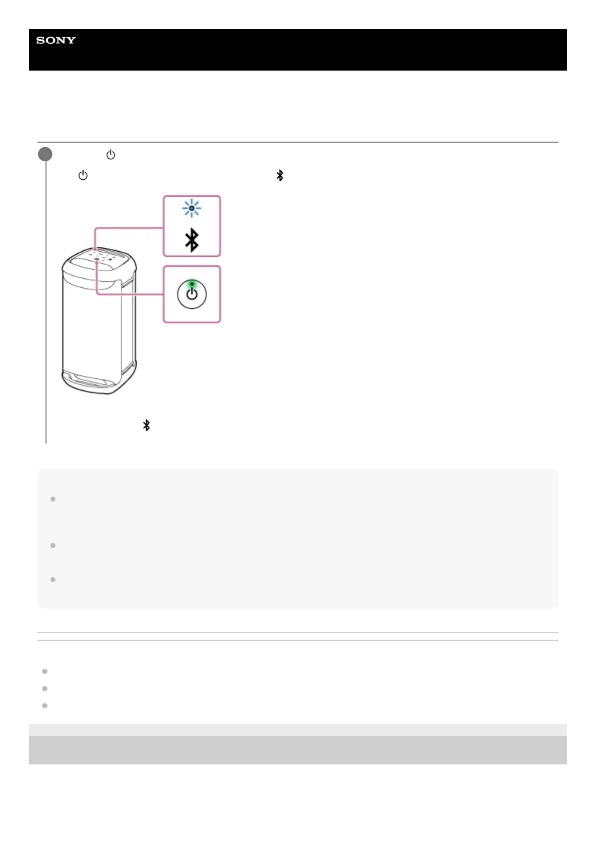 When the speaker has no pairing information, for example when you use the BLUETOOTH function for the first time